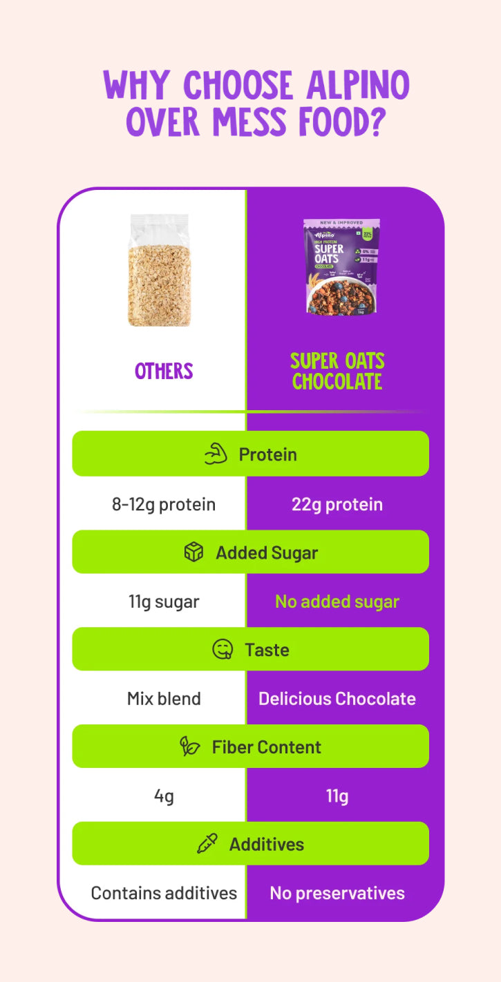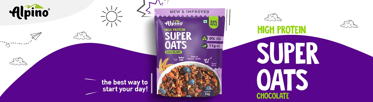 POWER-PACKED BREAKFAST OR SNACK : Alpino Peanut Butter Super Oats Chocolate is a delicious fusion of natural peanut butter, rolled oats, and rich cocoa. With 21g of protein per serving, it’s an ideal high-protein meal or snack for any time of day.