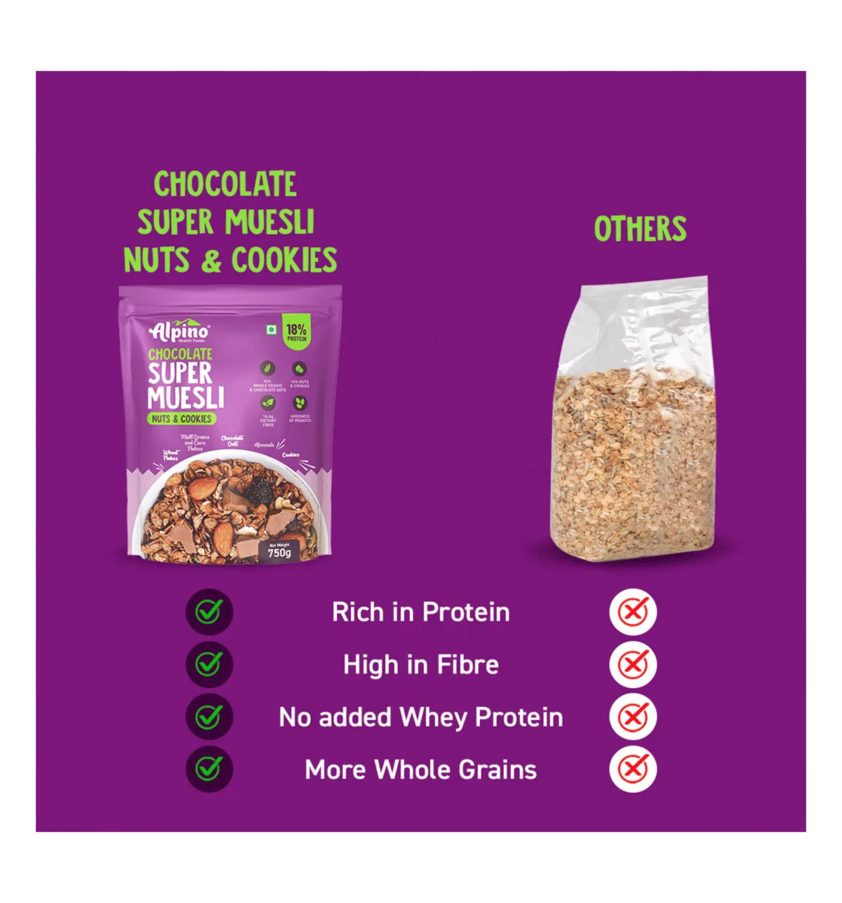 Alpino Protein Rich Super Muesli (Whole Grain Breakfast Cereal) - 750 gm - Chocolate is backordered and will ship as soon as it is back in stock.