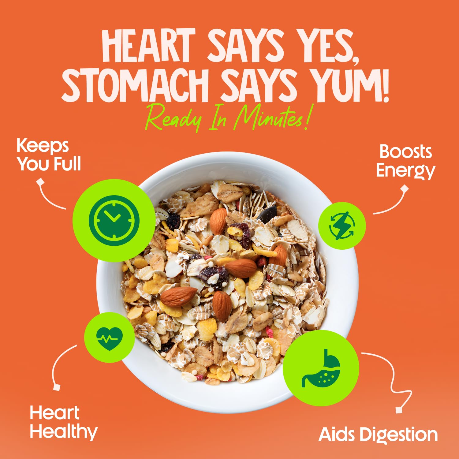 RICH IN FIBER, OMEGA-3 & MICRONUTRIENTS : This muesli is a good source of dietary fiber and omega-3, and is enriched with essential vitamins and minerals like iron, magnesium, phosphorus, and potassium to support energy and immunity.