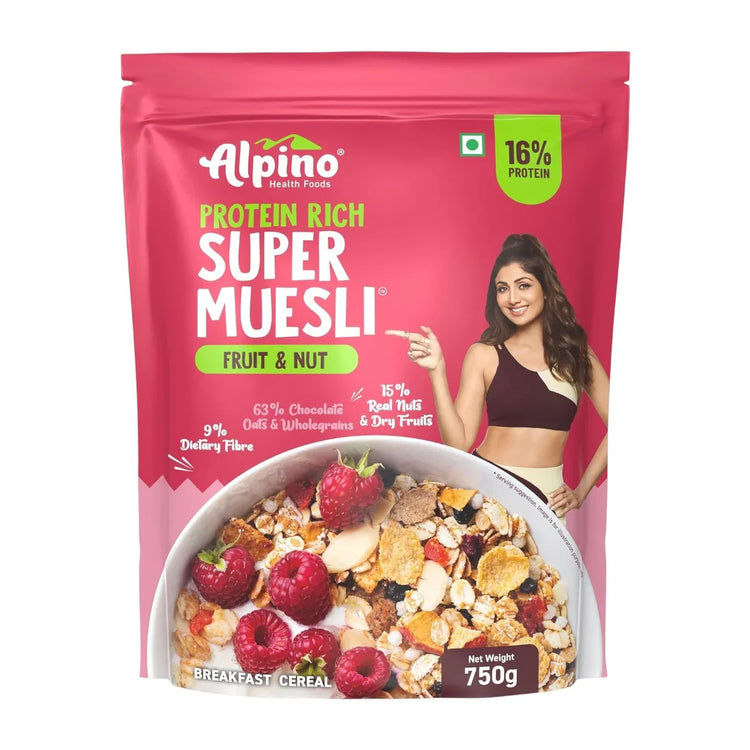 Alpino Protein Rich Super Muesli (Whole Grain Breakfast Cereal) - 750 gm