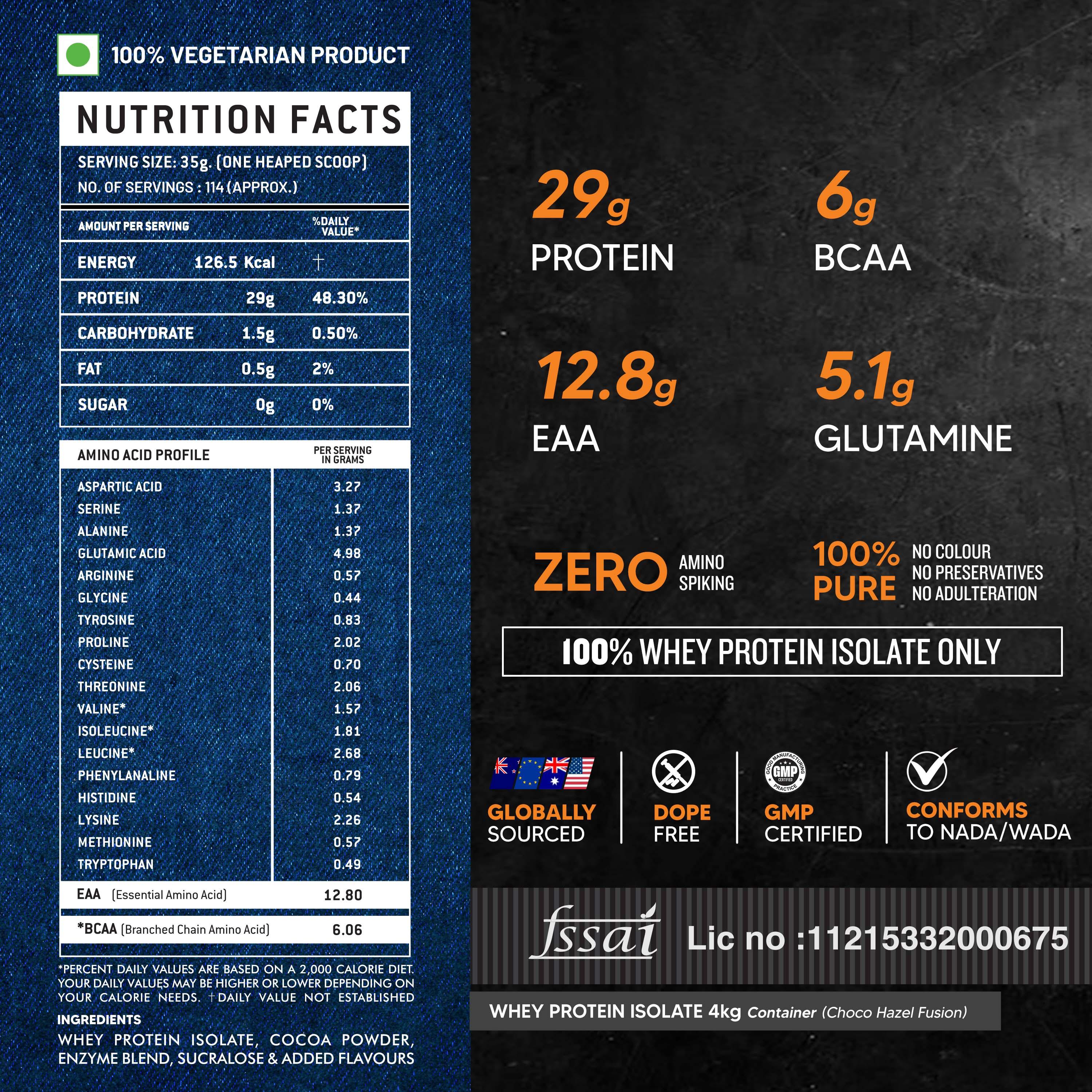 WHEY PROTEIN ISOLATE, COCOA POWDER, ENZYME BLEND, SUCRALOSE & ADDED FLAVOURS