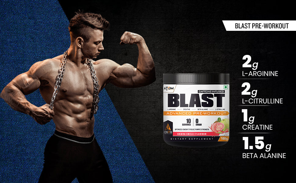 ATOM Blast advanced pre-workout supplement : is made by integrating performance-enhancing, proven ingredients that promote game-changing progress every time you hit the gym. Whether you're a beginner or an advanced athlete striving to push your limits, ATOM Blast is the perfect supplement to help meet your fitness goals. The GMP-certified, dope-free formula is third-party lab tested to ensure quality and potency.