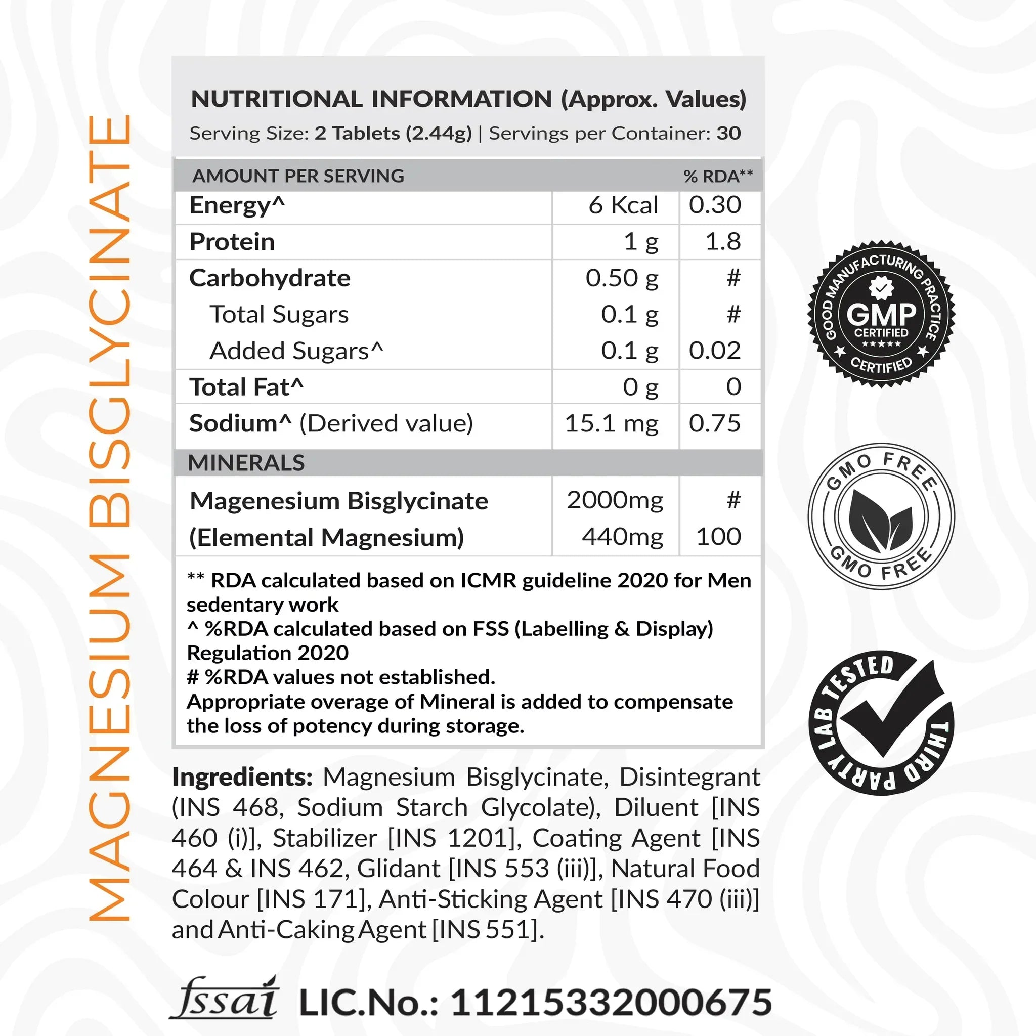 AS-IT-IS ATOM Magnesium Bisglycinate, 440mg Elemental Mg - 60 Tablets