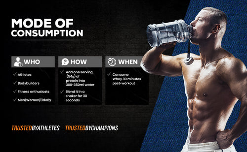 Add one heaping scoop (36g) of ATOM Performance Whey Protein to 250ml water or your favourite drink. Blend it well with a shaker or blender for 15-30 seconds. Enjoy the delightful experience of consuming your on-the-go protein drink.