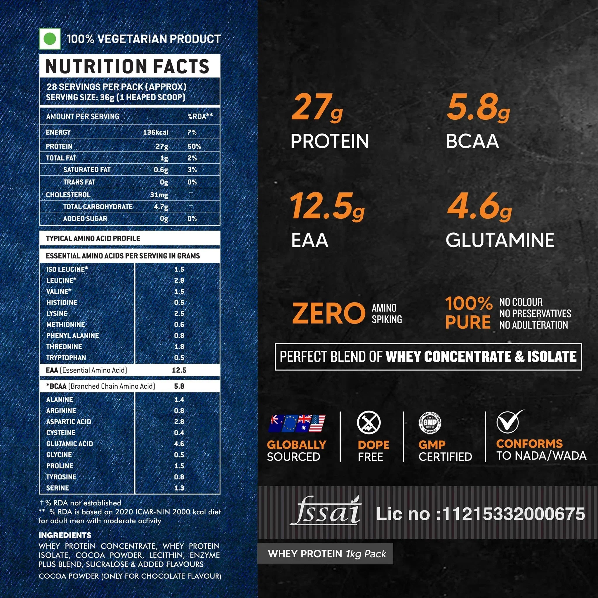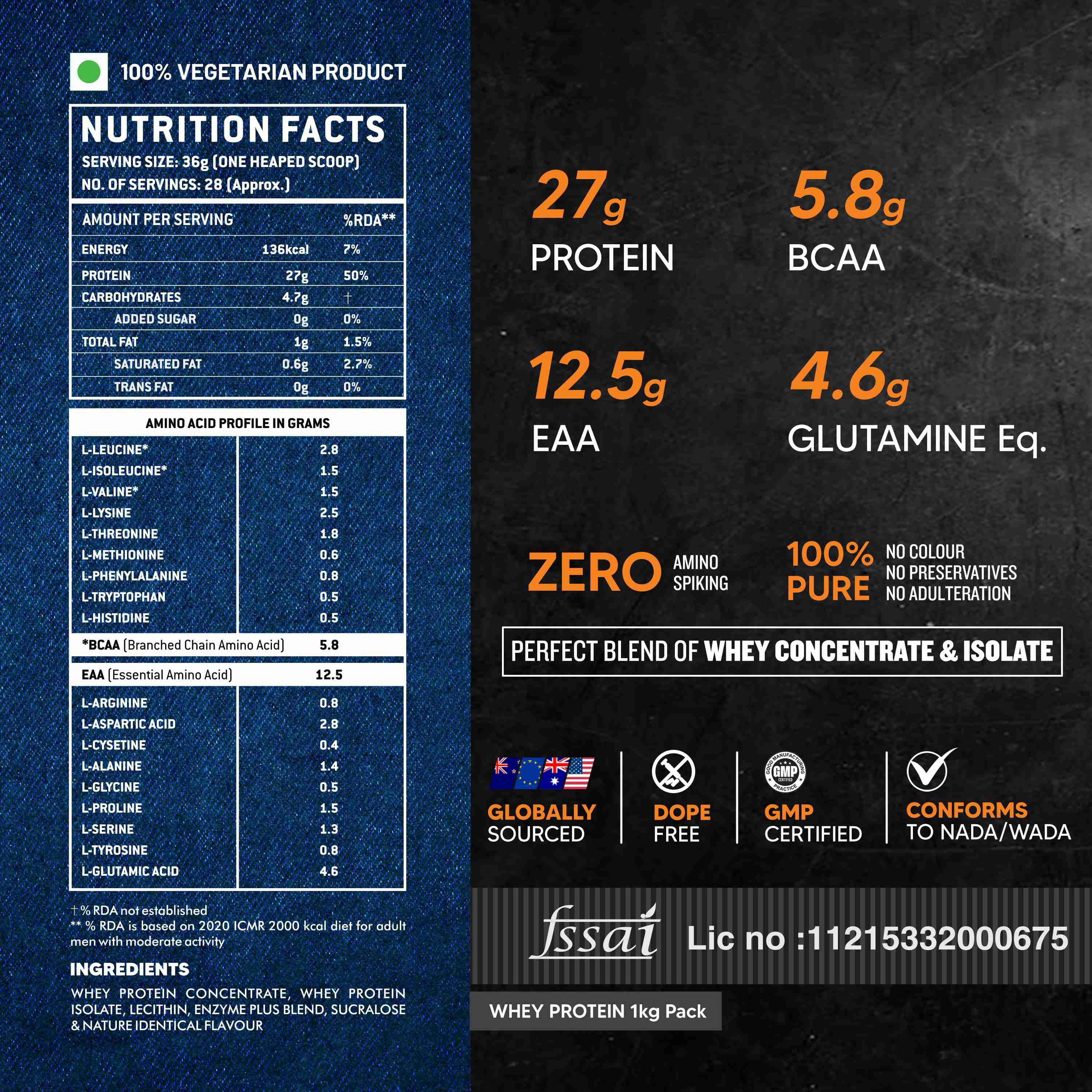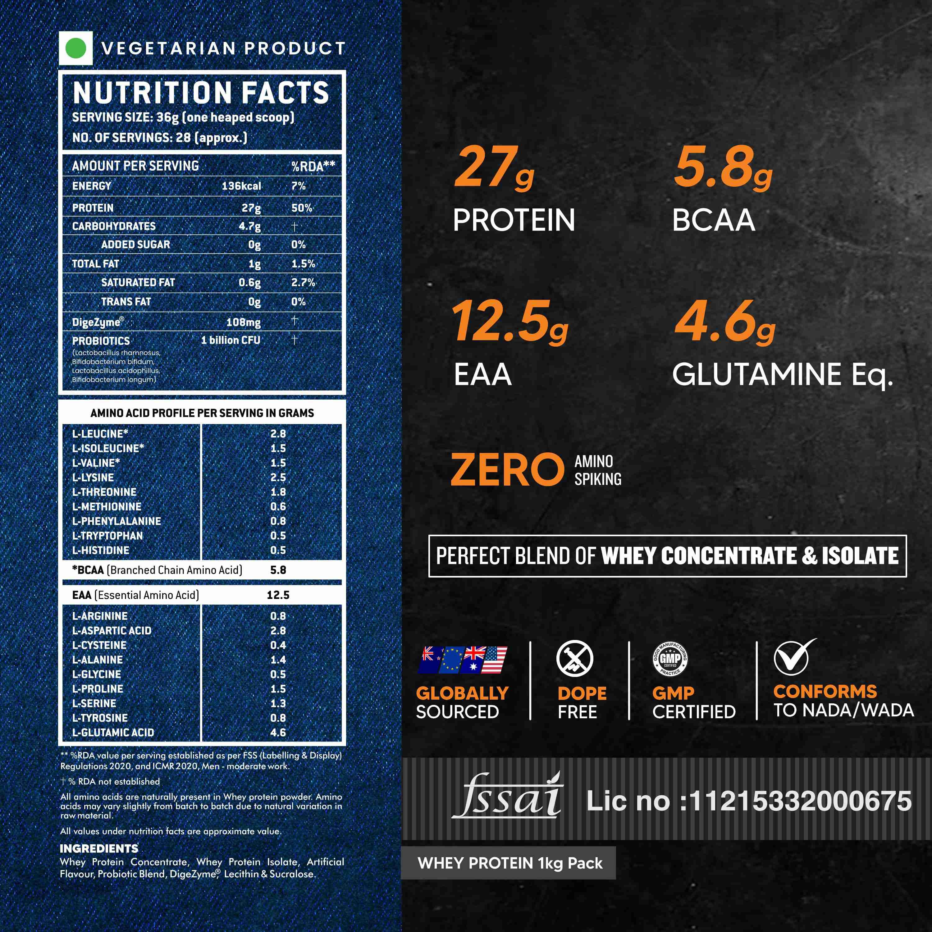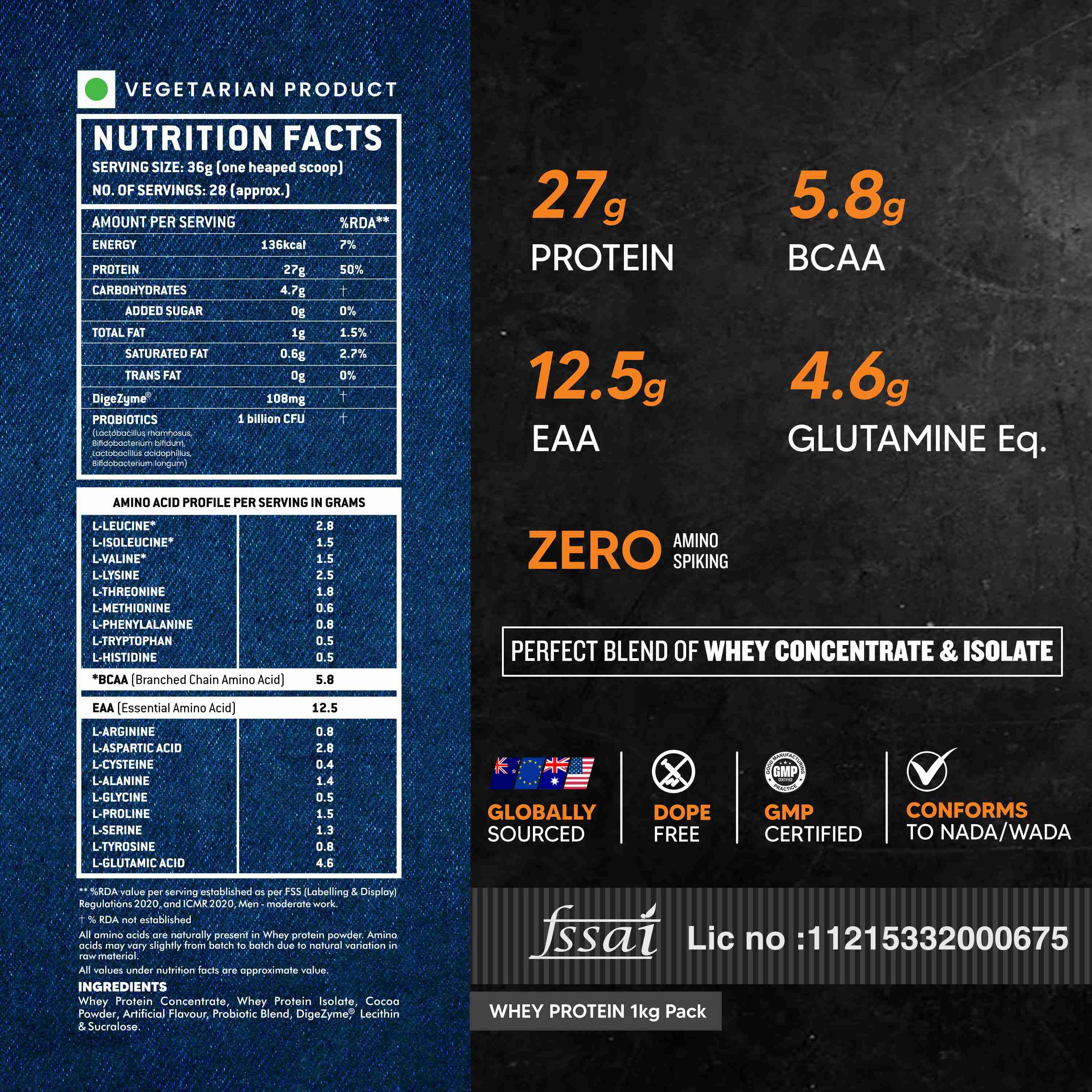 Whey Protein Concentrate, Whey Protein Isolate, Cocoa Powder, Lecithin, Enzyme Plus Blend, Sucralose & Added Flavours