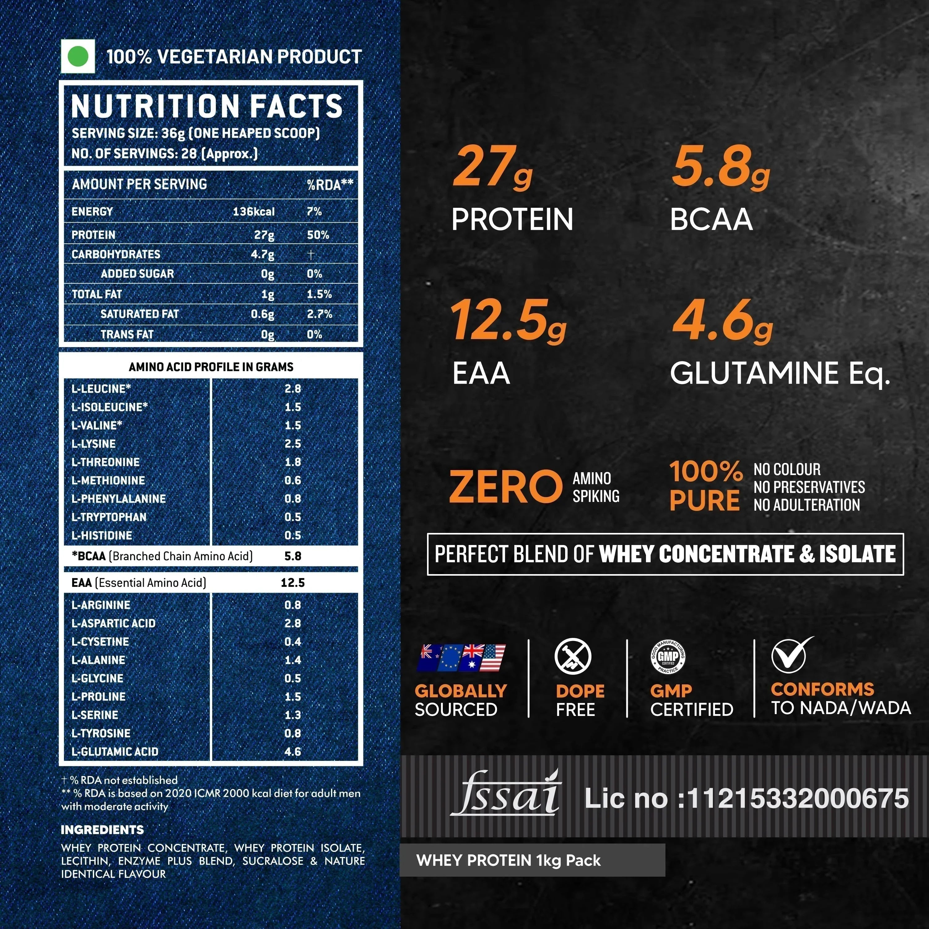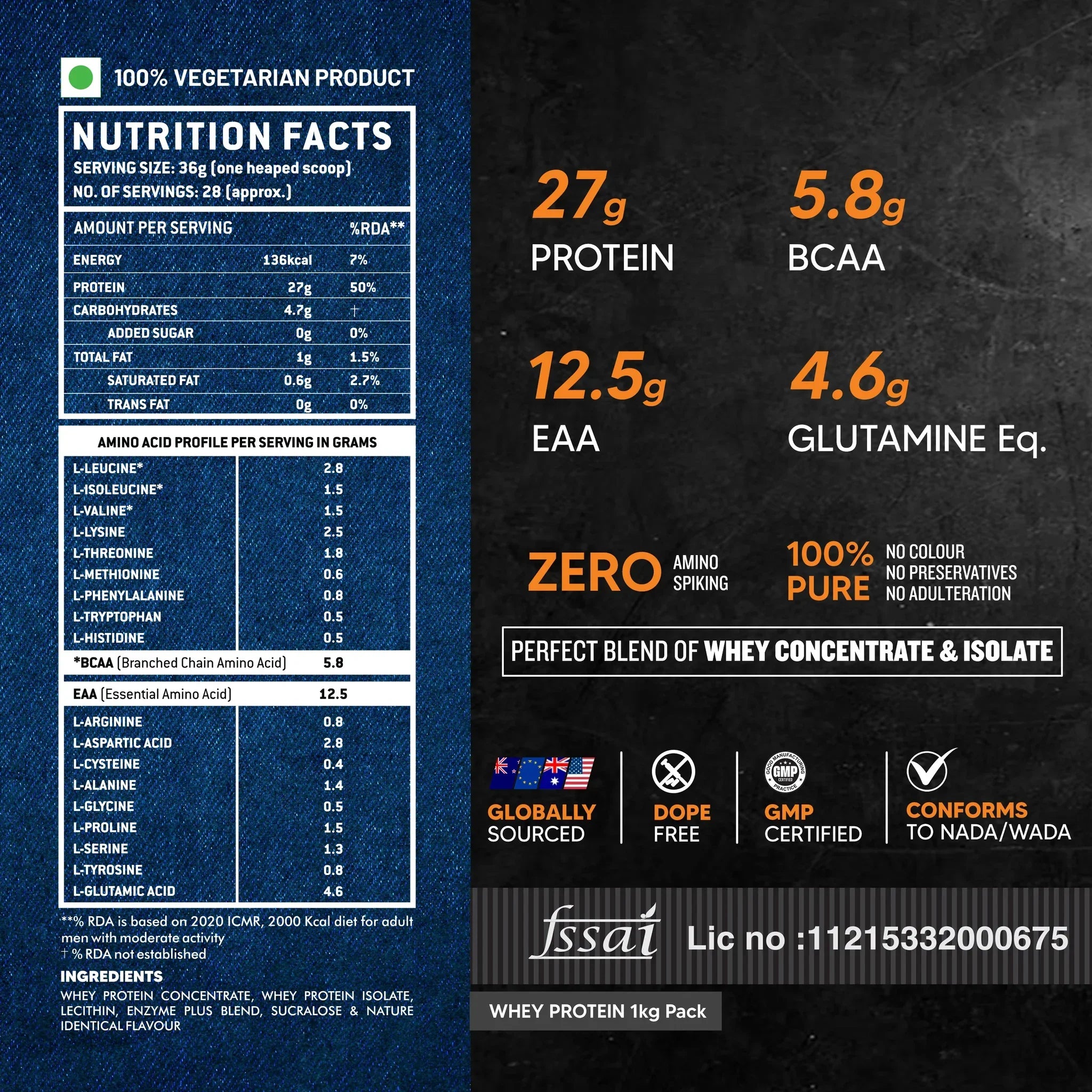 FAST-ACTING HIGH-QUALITY PROTEIN : Delivers 2027g of rapidly digesting Whey Protein per serving from Whey Protein Isolate and Concentrate Ideal for muscle growth and recovery.