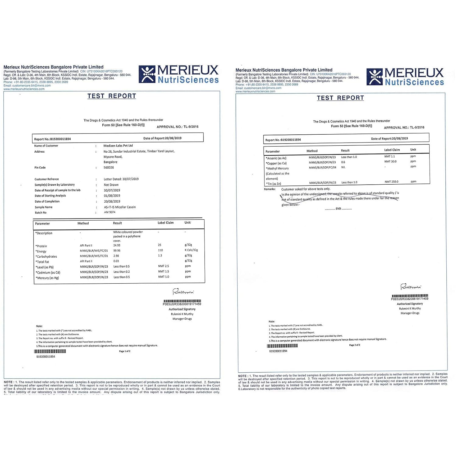 Medizen Labs Pvt Ltd, No. 104/4, 1st Main Road, NTY Layout, Avalahalli, Mysore Road, Bangalore - 560026