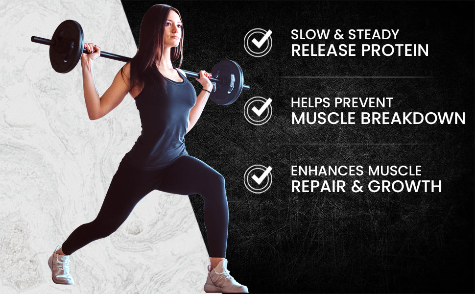 SLOW DIGESTING PROTEIN : Unlike fast-absorbing whey, micellar casein provides a steady 5-7 hour release of amino acids, making it ideal for night-time use or prolonged muscle support.
