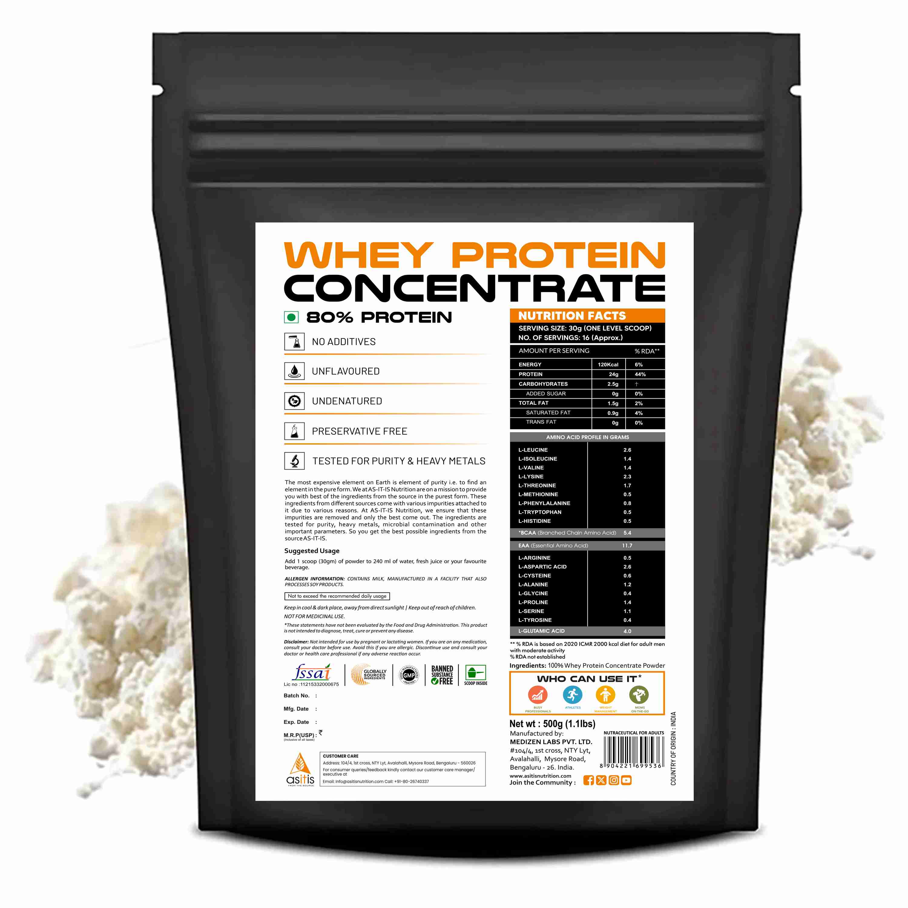 AS-IT-IS Nutrition Raw Whey Protein Concentrate 80% Unflavoured - 500g