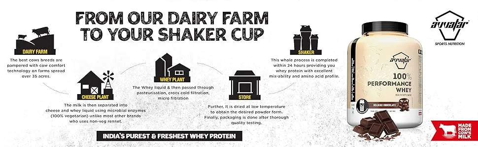 PURE & POWERFUL MUSCLE FUEL : Avvatar 100% Performance Whey Protein is loaded with essential amino acids that support muscle growth, recovery, and repair after intense workouts.