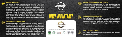 Discover premium Avvatar products, genuine Indian whey protein and high-quality fitness supplements born from a passion for clean, effective, and authentic sports nutrition tailored for the Indian physique. Fuel your workouts with grass-fed whey protein and explore a transparent range of locally sourced, rigorously tested products, from whey protein concentrate and isolate to performance-enhancing pre-workouts and BCAAs. At Nutristar, we share Avvatar's commitment to authenticity and quality, ensuring you receive 100% genuine and lab-tested supplements for real results. Choose Avvatar on Nutristar, your trusted source for authentic and effective fitness supplements, and experience the difference that quality and transparency can make in your fitness journey. Shop our range today and fuel your ambition with the power of genuine Indian nutrition!