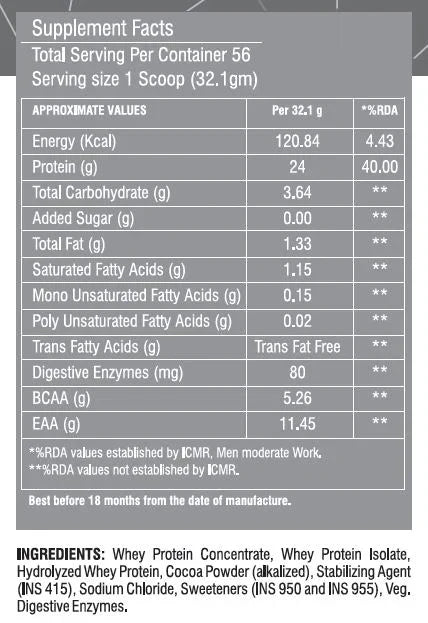 Advance whey protein is the most selling whey protein supplement of the best nutrition. Because of It's unmatchable quality and amazing taste it is highly rated whey protein in India. Best whey contains 24G pure whey protein along with 11G EAA and 5.5G BCAA. Veg digestive enzymes are also added in it to make it lighter for stomach.