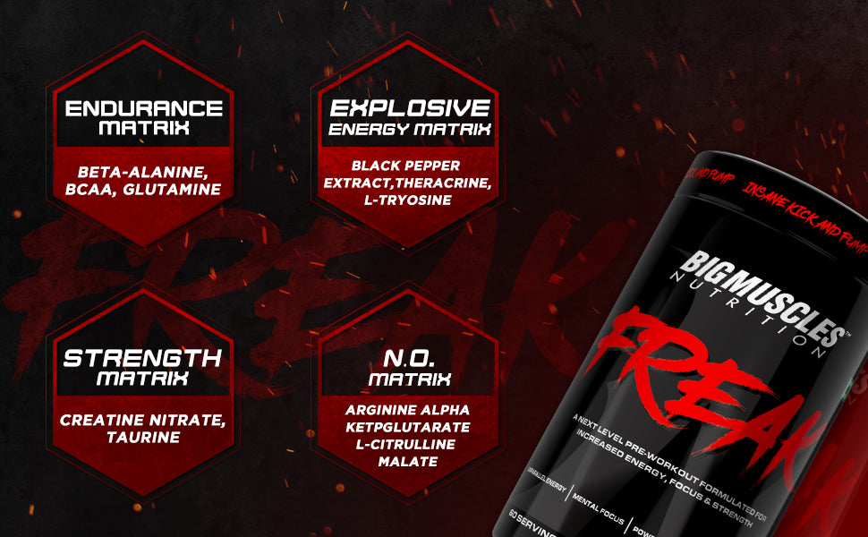 Push past your limits and dominate your workouts with Bigmuscles Nutrition's Freak, the ultimate pre-workout formula built for serious athletes!