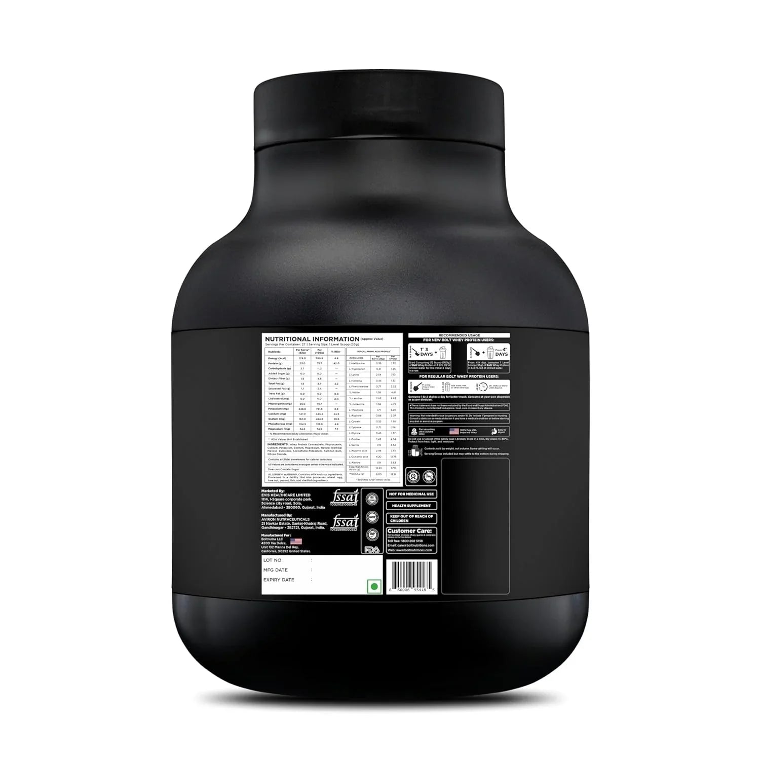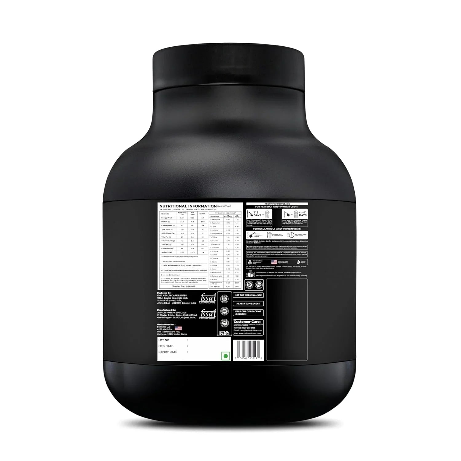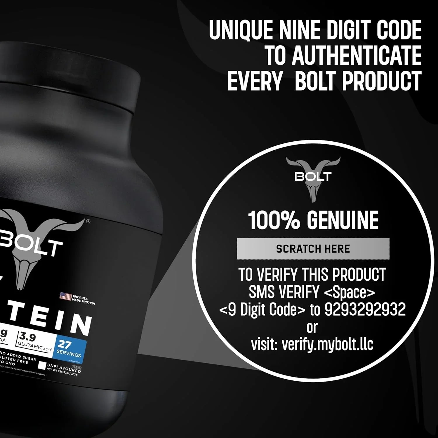 Bolt Nutrition 100% Whey Protein Powder | Muscle Recovery & Lean Muscle Support | 2lb, 27 Servings
