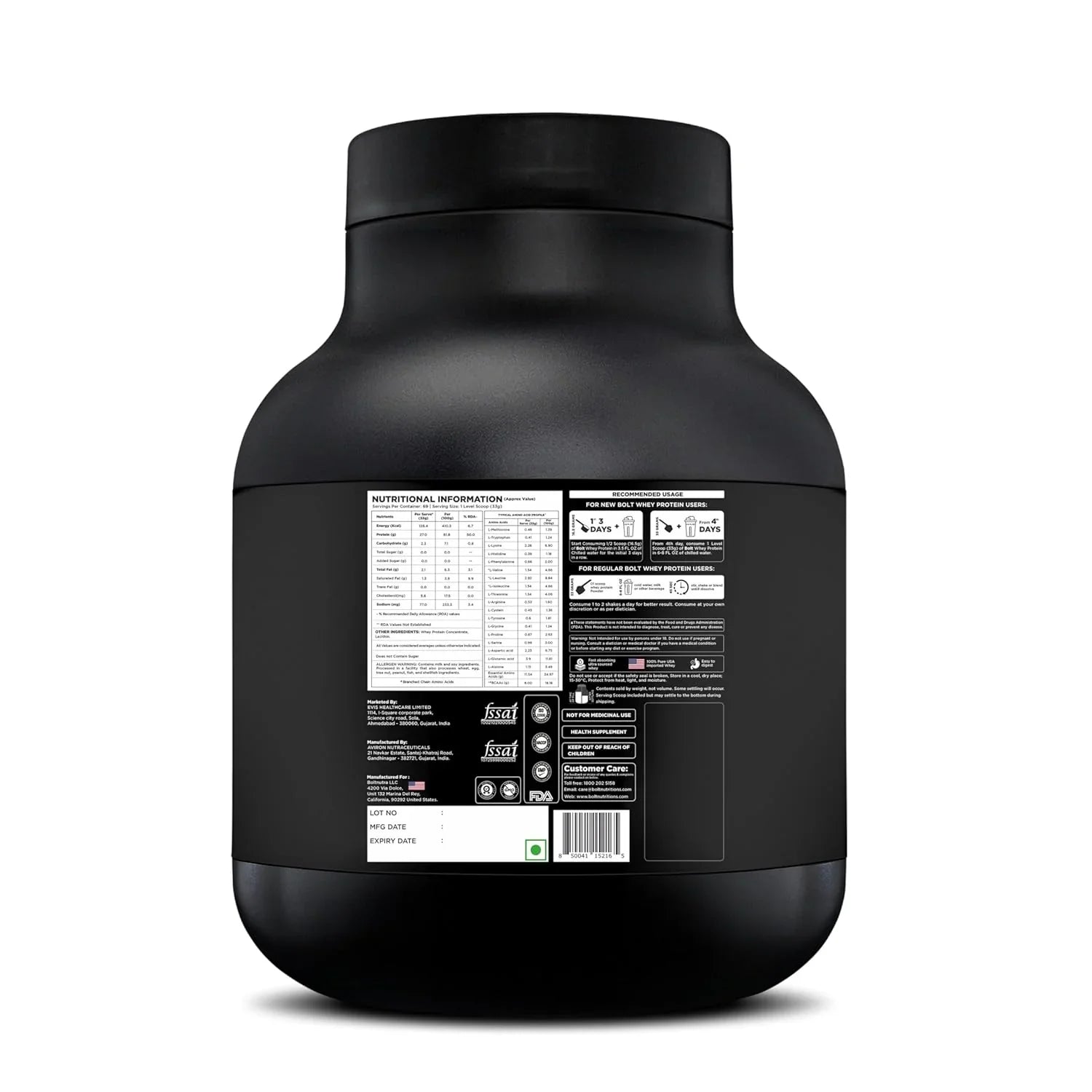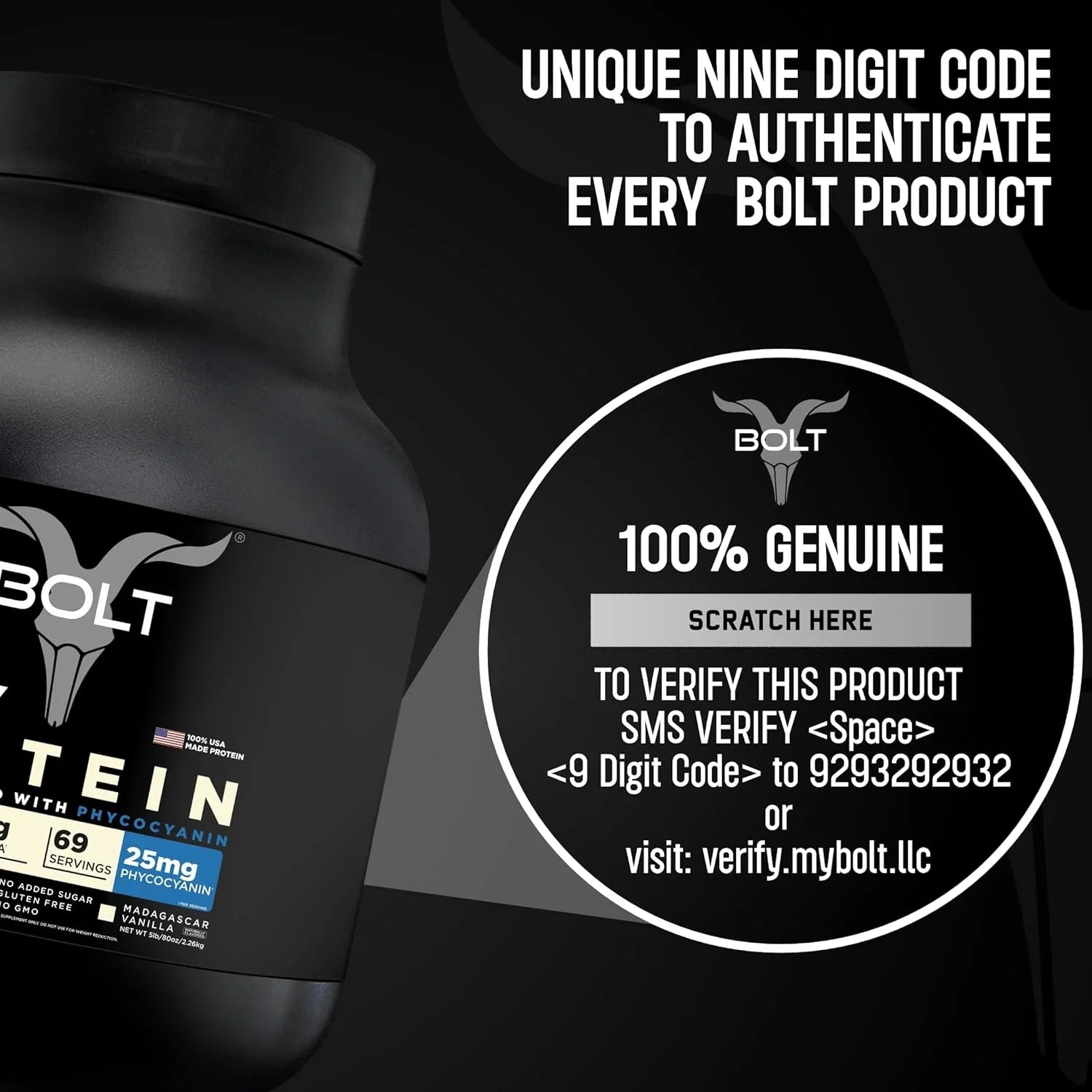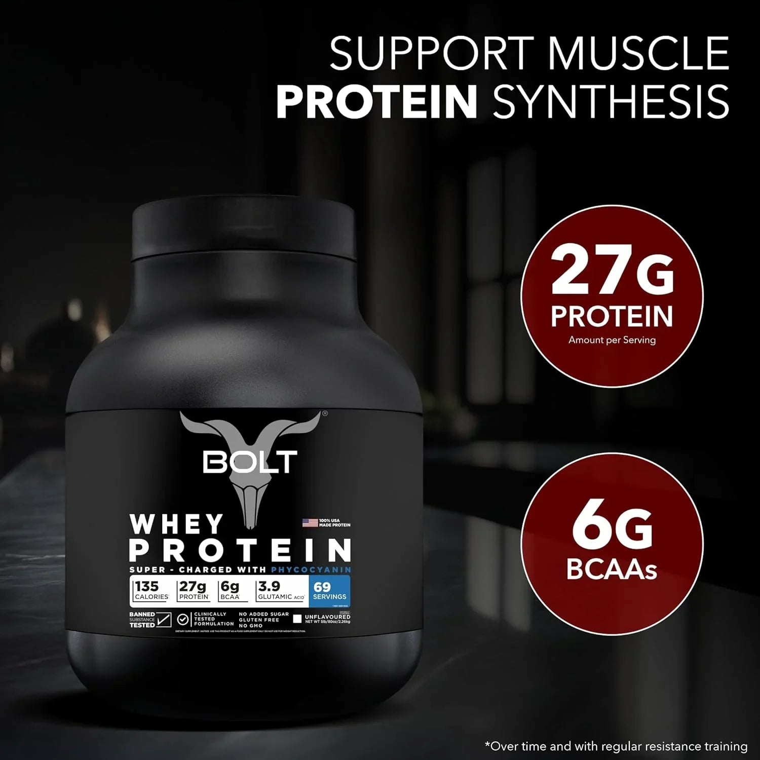 Bolt Nutrition 100% Whey Protein Powder | Muscle Recovery & Lean Muscle Support | 5lb, 69 Servings