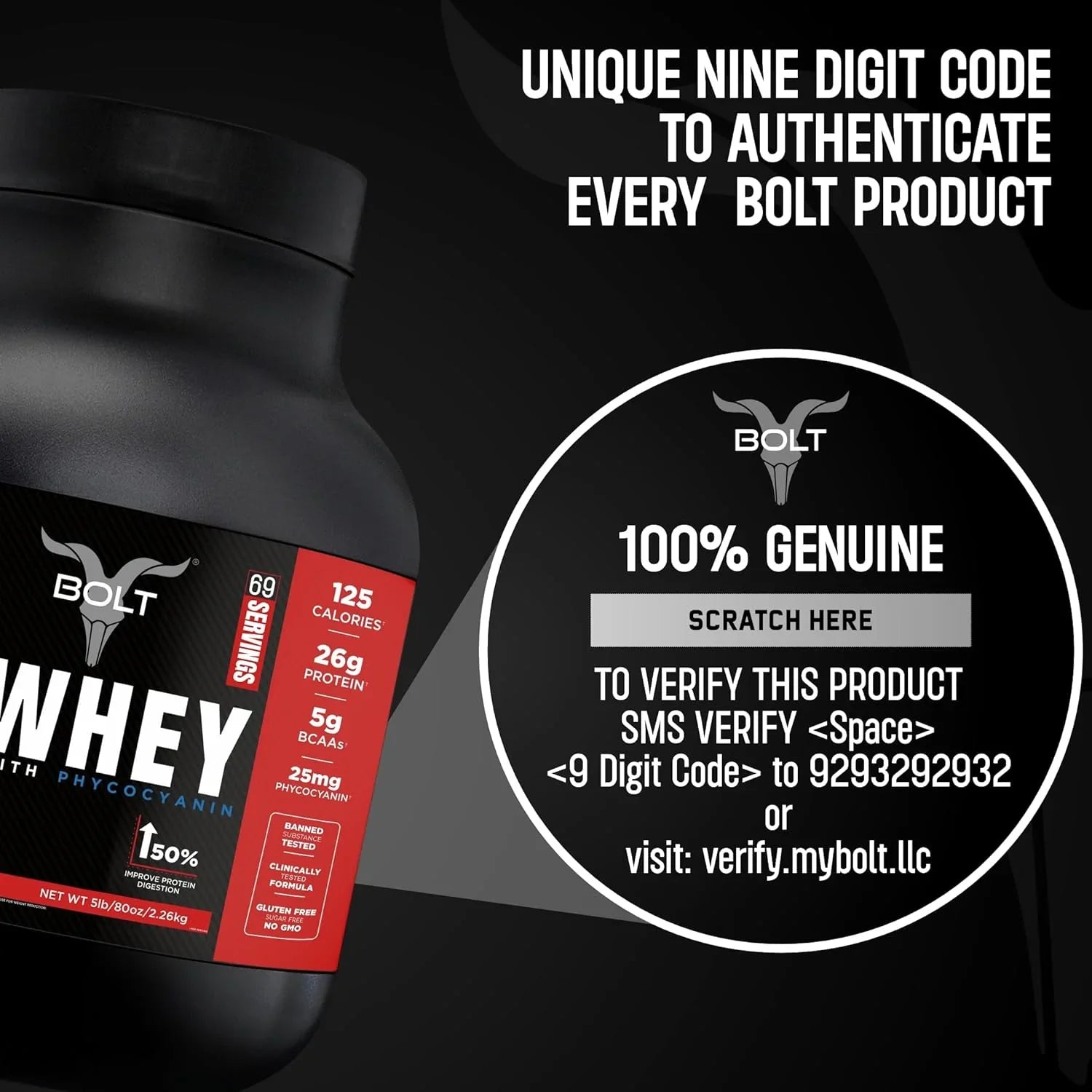 Bolt Nutrition Bozyme Gold Whey Protein Powder | High Protein & BCAA Content | 5lb, 69 Servings