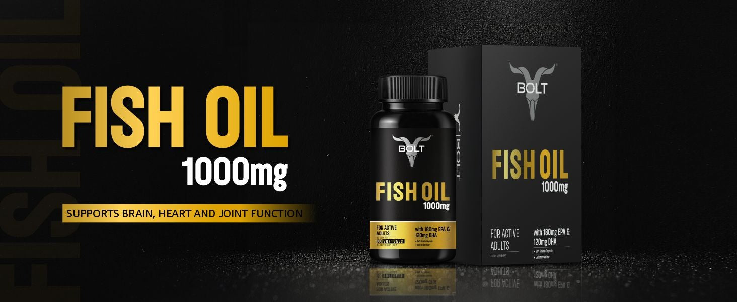 Bolt Nutrition Fish Oil 1000mg Capsules | Omega-3 Support | 60 Softgel Capsules