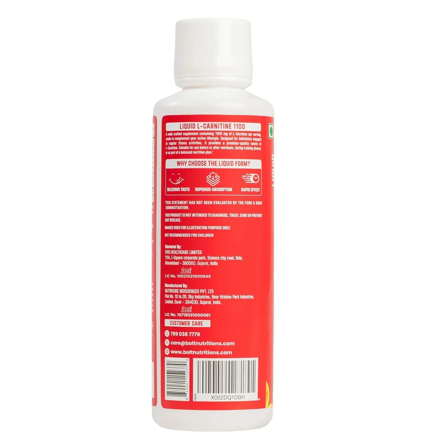 Bolt Nutrition L-Carnitine Liquid 1100 mg | Supports Weight Loss and Recovery | 450ml, 30 Servings