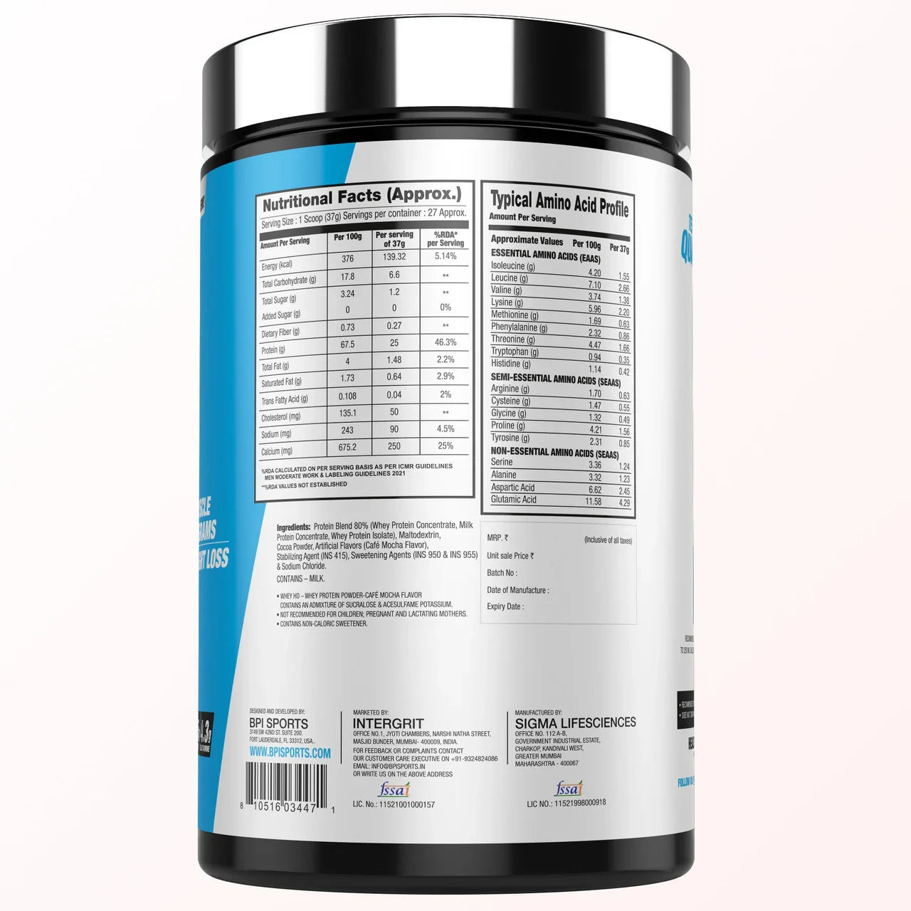 Ultra-Premium Whey Protein Blend : BPI Sports Whey HD® combines ultra-premium whey protein isolates and concentrates for optimal muscle support and versatility.