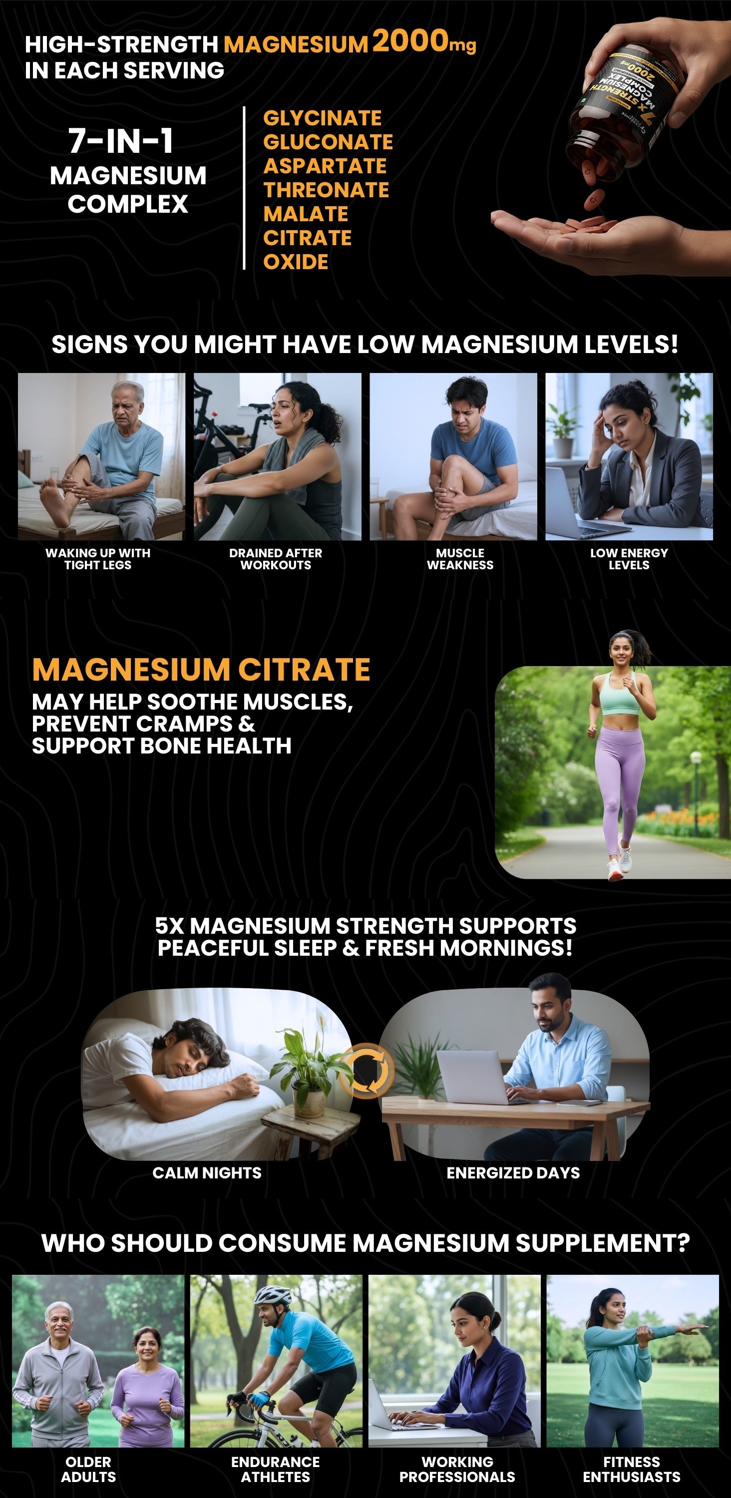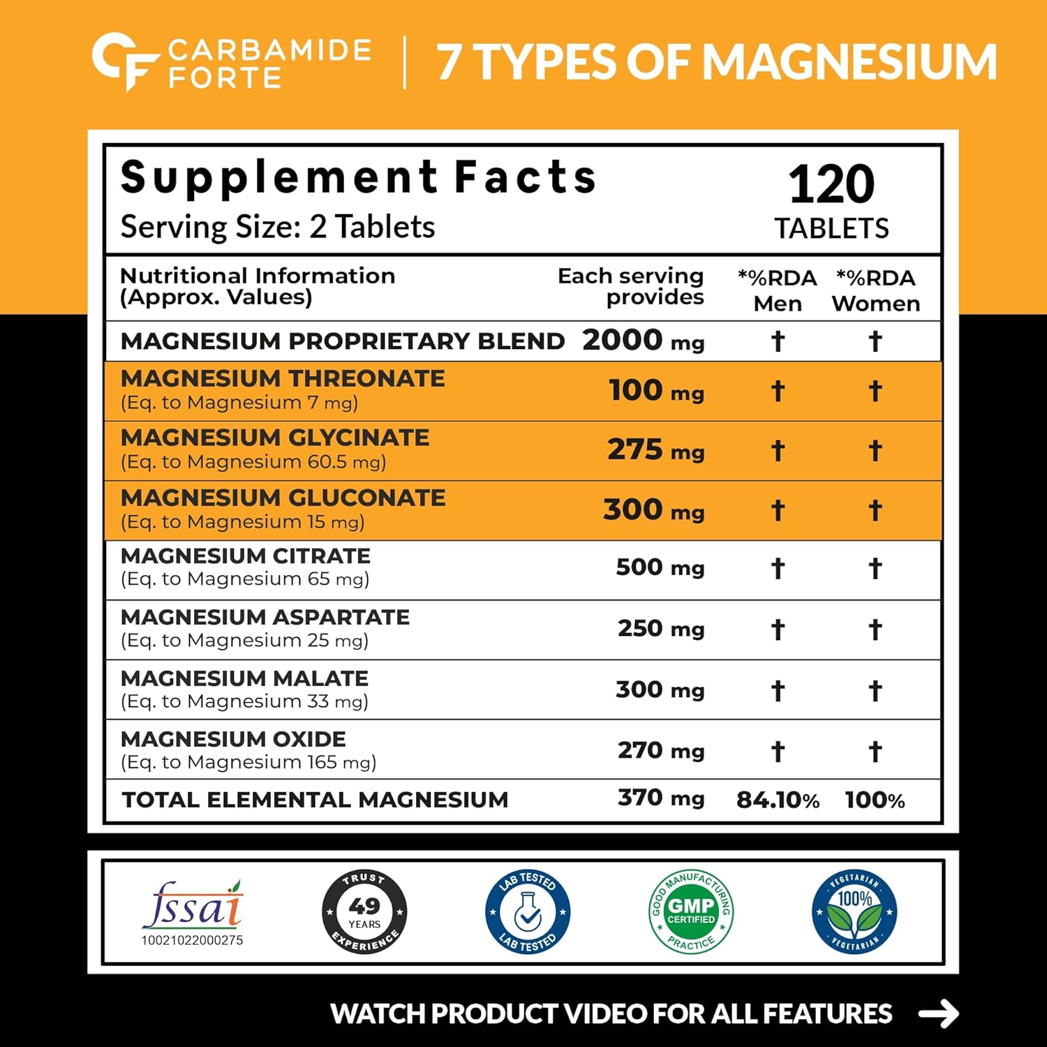 Carbamide Forte Magnesium Glycinate & Citrate 2000mg | 7X Strength Mineral Complex | 120 Tablets