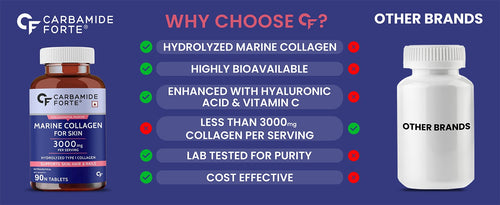 Carbamide Forte Max Strength Marine Collagen Tablets – 3000mg Type I Hydrolyzed Peptides for Skin, Hair & Nails