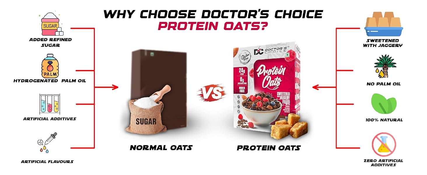 Fuel Your Day the Delicious Way : Introducing Doctor's Choice Protein Oats, the ultimate fusion of wholesome nutrition and delightful indulgence, crafted for health-conscious individuals like you.