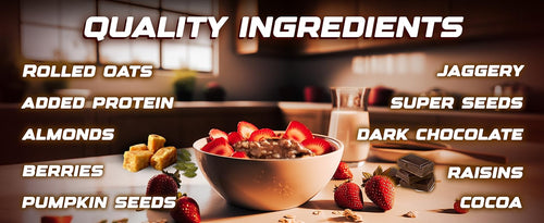Naturally Sweetened & Packed with Goodness : We've sweetened our Protein Oats with natural jaggery, adding a touch of traditional sweetness. Plus, every serving is generously loaded with a variety of nuts and seeds, providing essential nutrients and a satisfying crunch.