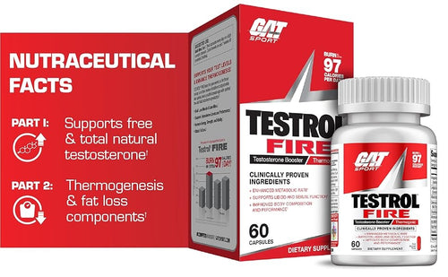 In today’s fast-paced world, GAT Sport TESTROL FIRE offers the ultimate convenience with a two-in-one capsule that combines testosterone support and thermogenic fat burning—helping you burn up to 97 extra calories per day while restoring youthful energy, strength, and performance.