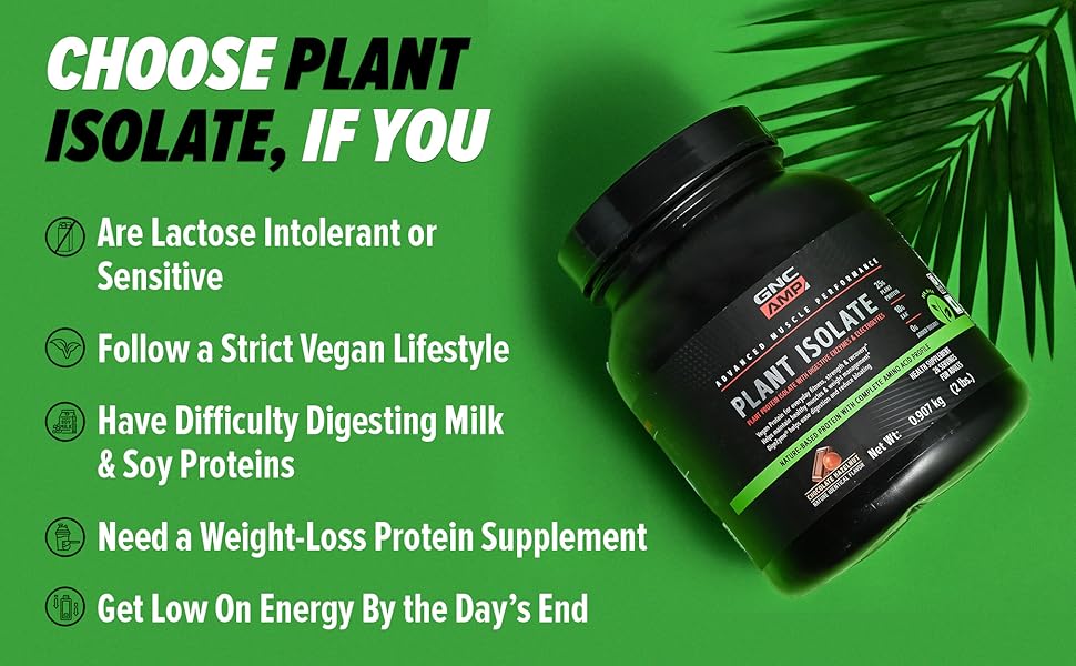 With It's dense nutritional composition, GNC’s Plant Isolate fuels your body, improves stamina, and enhances daily performance while fighting off fatigue and sluggishness.