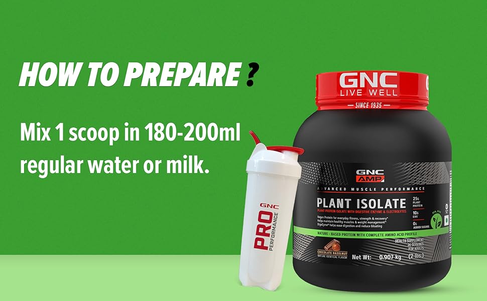 To ensure maximum absorption and easy digestion, GNC AMP Plant Isolate includes DigeZyme blend of five digestive enzymes (Alpha Amylase, Protease, Lipase, Cellulase, and Lactase). This reduces bloating and improves protein utilization.