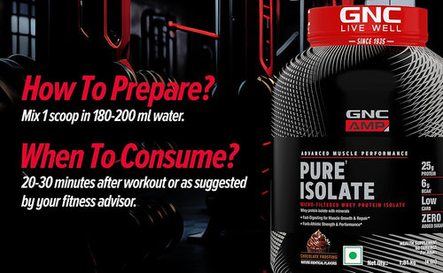 GNC AMP Pure Isolate represents the gold standard in protein supplementation, delivering 25g of ultra-filtered whey protein isolate per 30g serving. Through 20+ purification steps, we achieve 90% protein purity with minimal lactose and fat content.