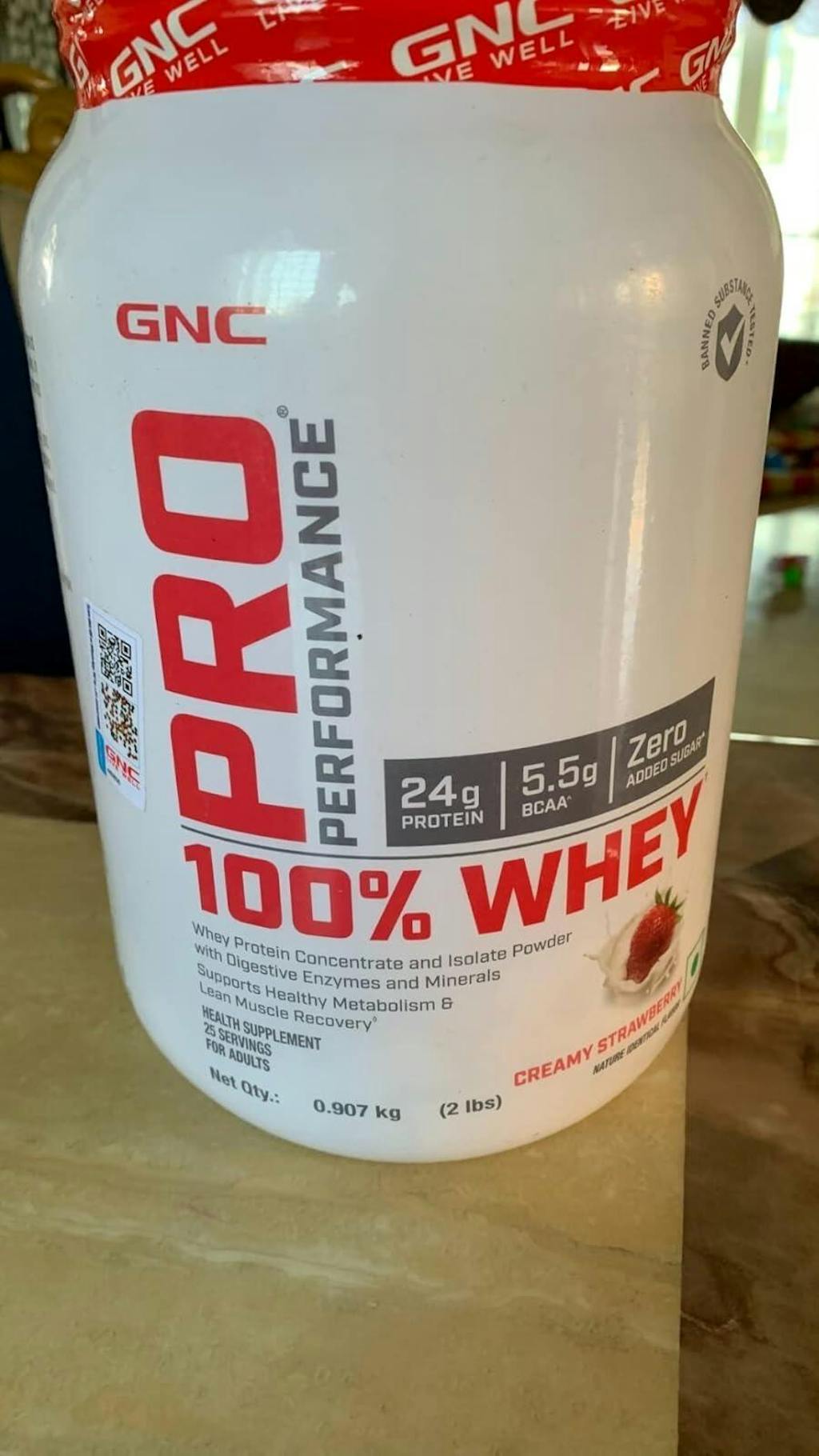 GNC Pro Performance 100% Whey delivers 24g of high-quality protein per serving through an advanced blend of whey concentrate and isolate. This complete protein contains all 9 essential amino acids to maximize muscle protein synthesis, support recovery, and promote lean muscle growth ideal for athletes and fitness enthusiasts at all levels.