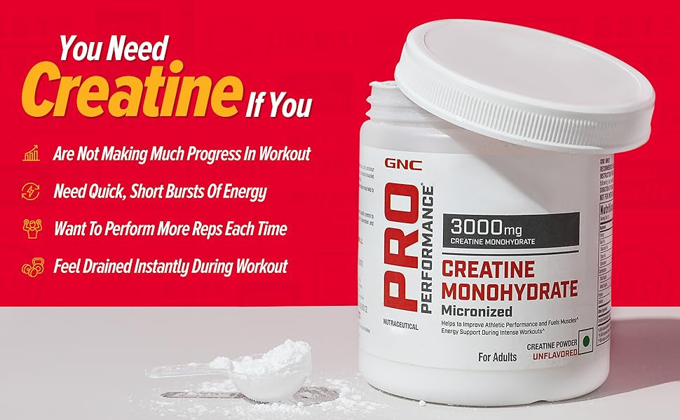 Boost Performance with Creatine : GNC Pro Performance Creatine Monohydrate helps elevate your performance by fueling skeletal muscles and enhancing exercise capacity through It's conversion to Creatine Phosphate in the body.