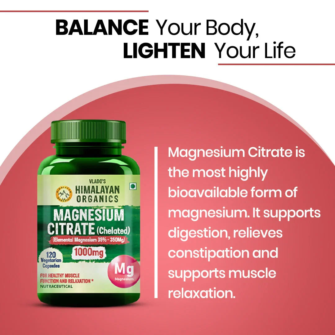 Boost your muscle, nerve, and heart health with Vlado’s Himalayan Organics Magnesium Citrate Supplement, delivering 1000 mg of highly bioavailable Magnesium Citrate with 35% elemental magnesium. This essential mineral supports energy production, bone strength, digestion, and relaxation, helping you maintain overall wellness with every dose. Magnesium is an essential mineral that plays a critical role in over 300 enzymatic processes in the body. Vlado’s Himalayan Organics Magnesium Citrate provides 1000 mg of Magnesium Citrate with 35% elemental magnesium for enhanced absorption and maximum effectiveness. This supplement helps support muscle function, maintain healthy bones, regulate nerve signals, promote heart health, and encourage relaxation and restful sleep. Formulated with high-quality ingredients, this supplement ensures optimal well-being and daily vitality. Magnesium is a key nutrient involved in hundreds of bodily functions, including muscle contraction, nerve signaling, energy metabolism, and bone mineralization. Magnesium Citrate is a highly bioavailable form, meaning the body absorbs and utilizes it efficiently. Regular supplementation helps prevent deficiencies that may lead to muscle cramps, fatigue, irregular heartbeat, and stress-related issues. Whether you're an athlete looking for muscle support, a professional dealing with stress, or someone seeking better sleep and digestion, Vlado’s Himalayan Organics Magnesium Citrate is the perfect daily companion. With 35% elemental magnesium, it ensures that your body gets the right amount of this essential mineral to function optimally every day. Magnesium is an essential mineral that plays a key role in muscle function, nerve signaling, heart health, and energy production. Vlado’s Himalayan Organics Magnesium Citrate delivers 1000 mg of highly absorbable Magnesium Citrate (35% elemental magnesium) to ensure maximum effectiveness for your daily wellness.