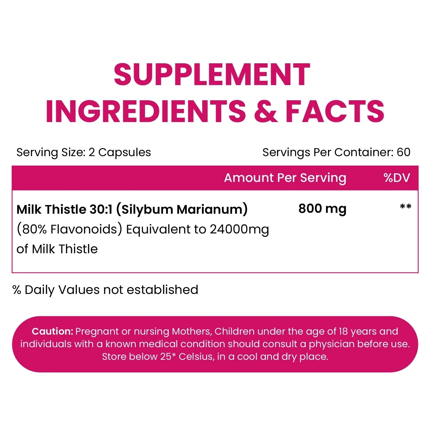 • 800mg Milk Thistle Extract: Standardized to contain 80% silymarin (640mg)