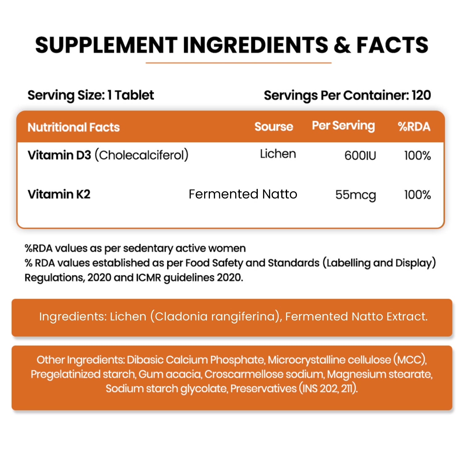 Vlado’s Himalayan Organics Vitamin D3 + K2 supplement is a plant-based supplement designed to enhance your overall well-being. Vitamin D3, sourced from lichen, boosts calcium absorption, while K2 as MK7, derived from fermented natto, ensures calcium is directed to your bones and not your arteries. This synergistic formula strengthens your bones, improves heart health, and enhances immunity. Support your health naturally with this friendly D3 + K2 supplement. Carefully sourced from lichen and fermented natto, it delivers 600 IU of Vitamin D3 and K2 as MK7 to promote bone strength, reduce the risk of fractures, and protect your heart from calcification. Vlado’s Himalayan Organics D3 + K2 tablets offer more than just bone support—they provide a holistic approach to wellness. With Vitamin D3 from lichen ensuring calcium absorption and K2 from natto guiding calcium to your bones, this supplement prevents calcification in arteries and strengthens your skeletal system. Vlado’s Himalayan Organics brings you a powerful blend of D3 and K2, working together to enhance calcium metabolism. Sourced from lichen and natto, this plant-based supplement ensures calcium strengthens your bones without accumulating in your arteries, reducing the risk of calcification. This advanced D3 and K2 formula is specially crafted to support your bones, heart, and immune system. Vitamin D3 enhances calcium absorption, while K2 directs it to the right places—your bones and teeth. With ingredients sourced from nature, this supplement not only improves bone density and flexibility but also helps maintain clean, flexible arteries for optimal cardiovascular health.