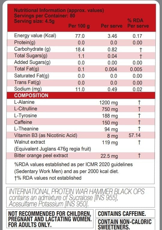 International Protein Black Ops War Hammer Pre-Workout - 80 Servings