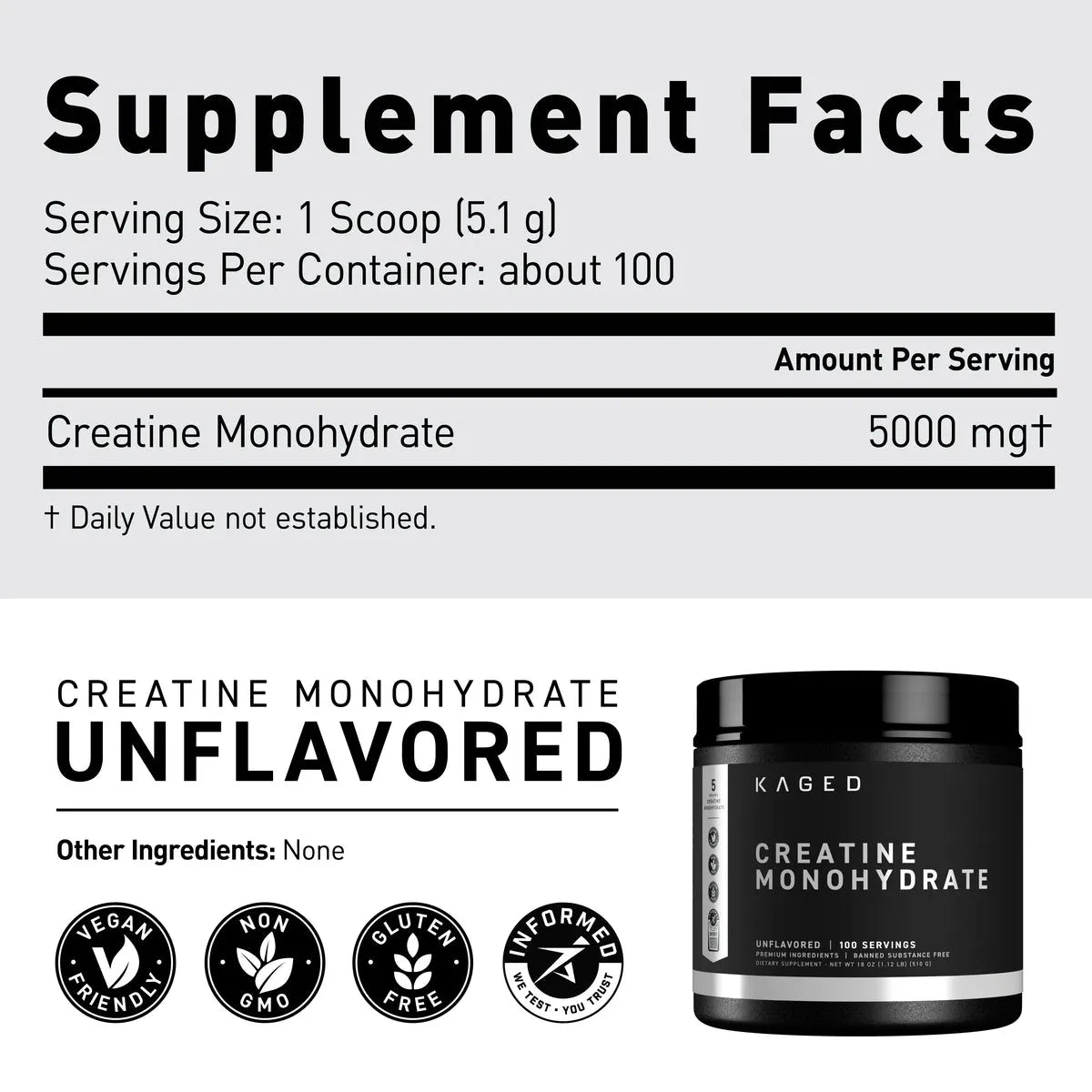 Kaged Creatine Monohydrate - 100 Servings - Unflavored is backordered and will ship as soon as it is back in stock.