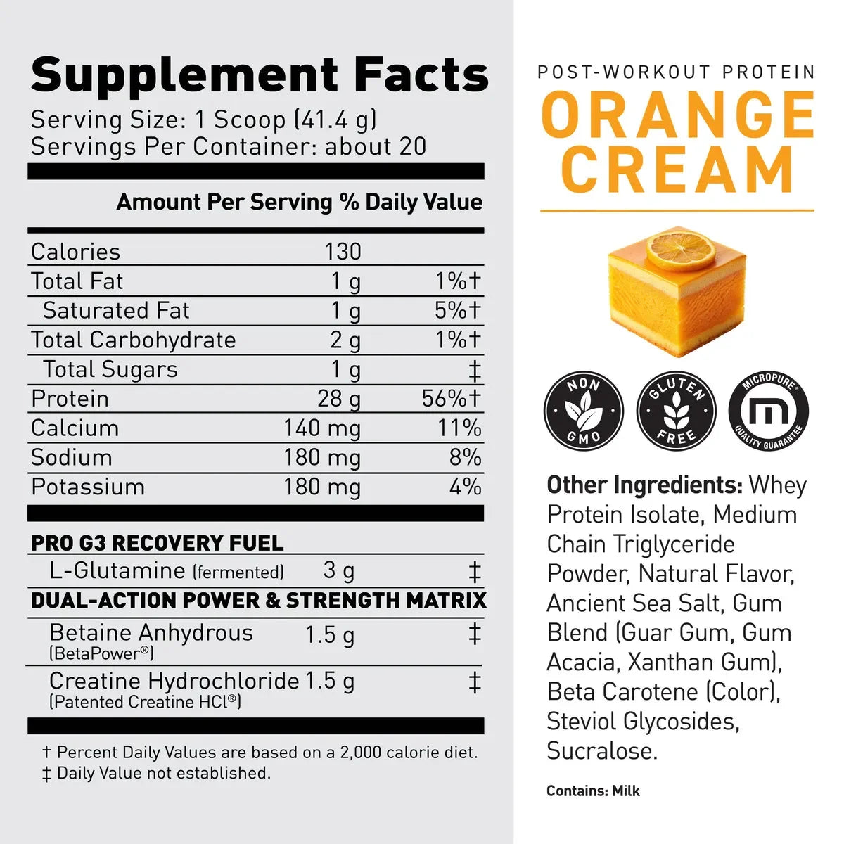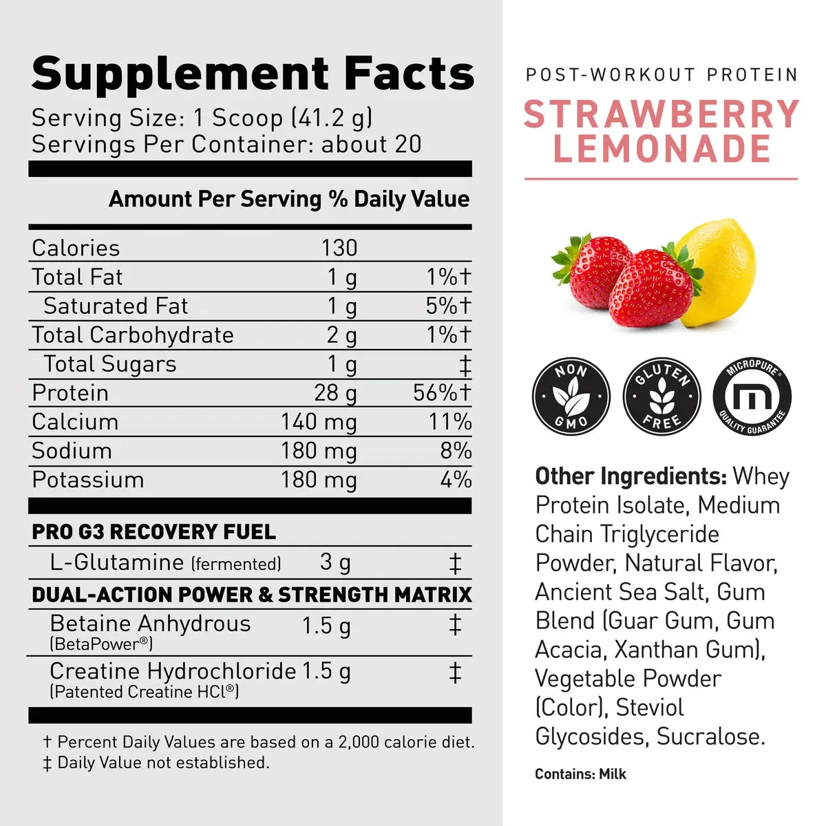 This elite formula begins with 28g of 100% ioWhey Protein™ Isolate. We then added key recovery ingredients such as Creatine HCl® and fermented L-glutamine to round out this powerful recovery fuel complex. Designed with fast-digesting whey protein isolate, Post-Workout Protein is the ideal supplement to help you bounce back quickly from grueling training.