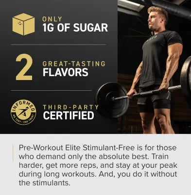 Pre-Workout Elite Caffeine-Free is formulated for the most intense training sessions, harnessing 18 premium, science-backed ingredients with a focus on maximum absorption, clean performance, and laser-sharp focus without the use of stimulants.