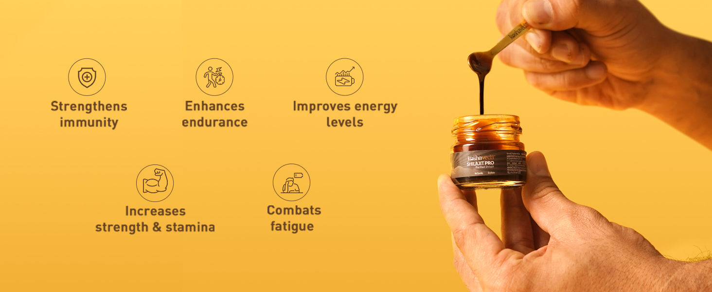 Natural Performance Boost : Feel nature's power with Koshaveda Summer Shilajit. It offers unmatched strength, stamina, and endurance, perfect for gym-goers and fitness enthusiasts seeking a natural energy boost.