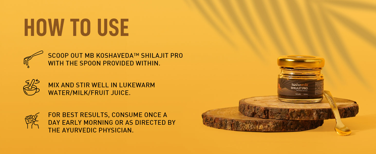If you are someone who doesn't let summer days tangle with your iron-crushing crusade, then why should your supplement be any different? Ayurveda just met modern science and the result is an uber-powerful elixir that'll help you rise to peak performance. Introducing Koshaveda Summer Shilajit- An advanced ayurvedic formula specially tailored to reap the most out of the mighty herb Shilajit even in summer. What sets Koshaveda Summer Shilajit apart is its carefully crafted formulation that keeps the herb's hot potency in check while increasing its efficacy. Because why would you go soft on iron any time of the year when you can set off your slay mode with magnified strength, stamina, and endurance levels? That too, while staying natural. With its potent trio of Shudh Shilajit, Honey and Karpoora, now move to a whole new level of energy and wellness. Primarily sourced from High Altitude Himalayas, purified as per Ayurvedic Shodhna techniques, and backed by AYUSH and NABL certification, this product is what you need to make weaknesses a thing of the past.