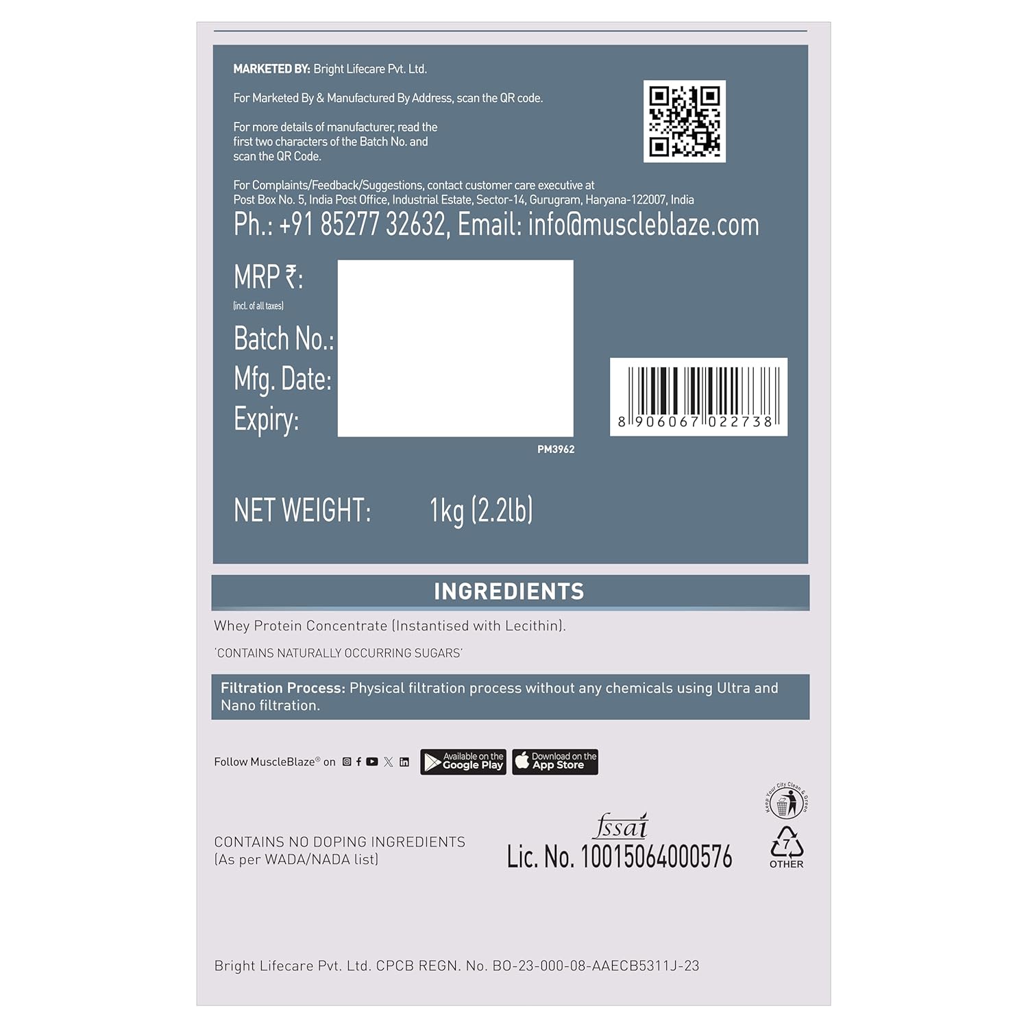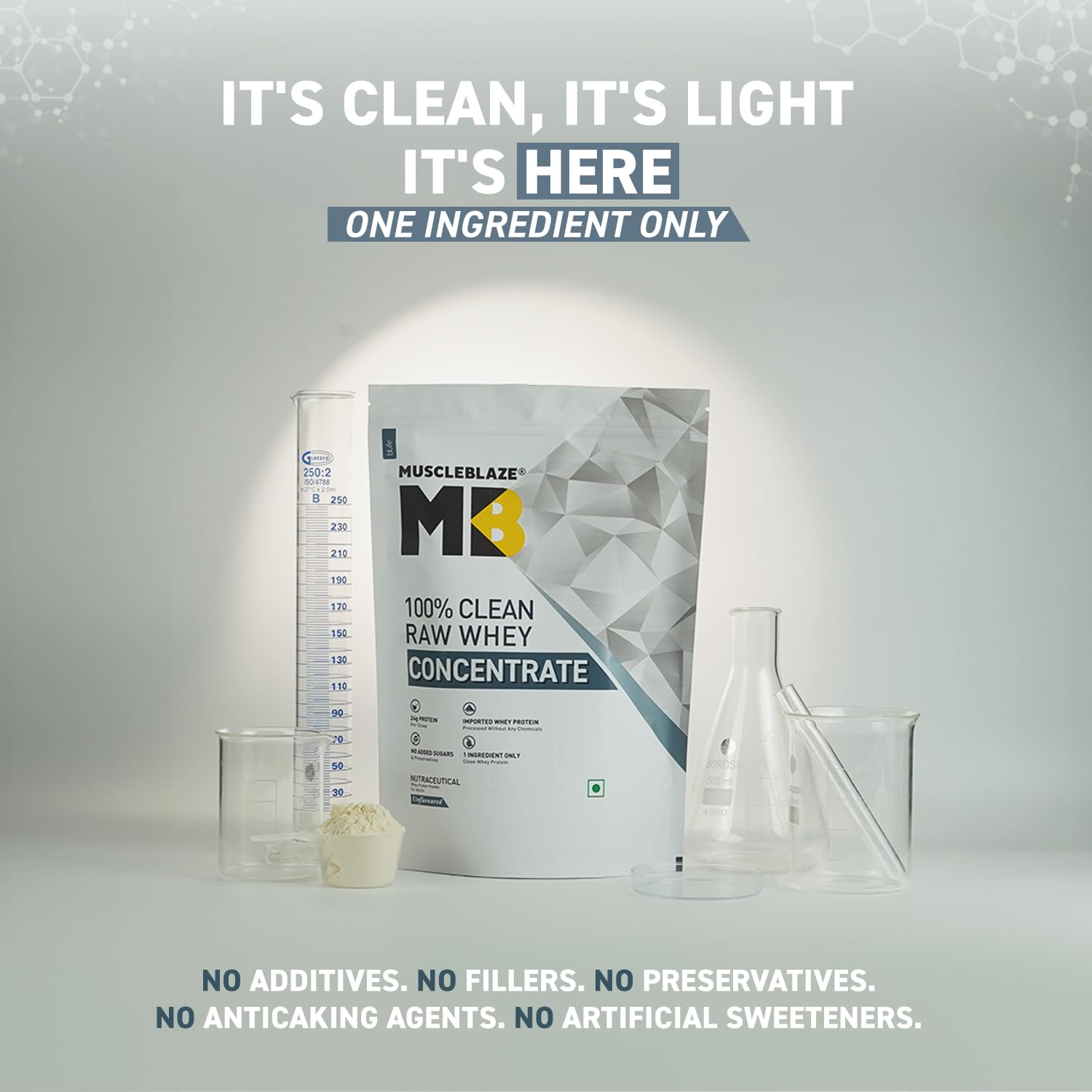 MuscleBlaze 100% Clean Raw Whey Concentrate - Unflavoured Power, Pure Performance