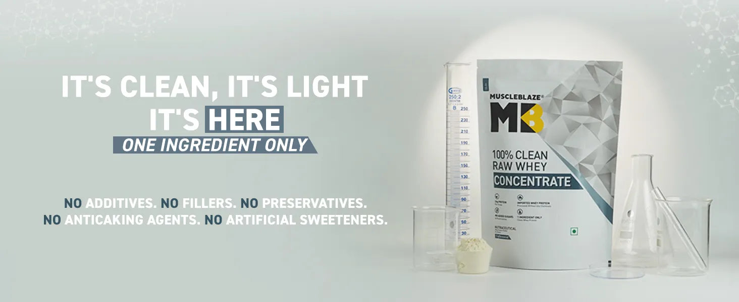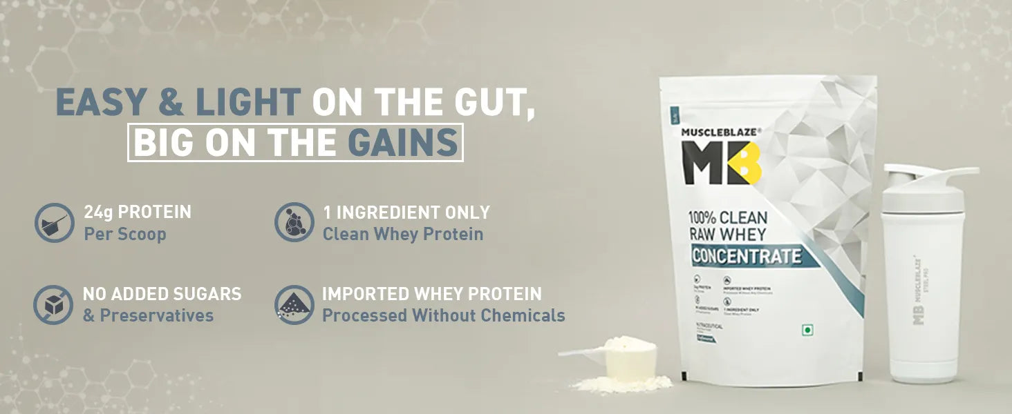 Build lean muscle with confidence using MuscleBlaze 100% Clean Raw Whey Concentrate pure strength, no fillers.