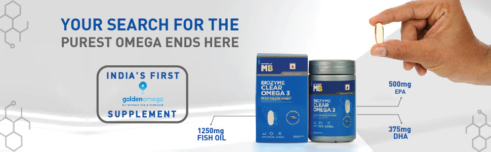 MuscleBlaze Biozyme Clear Omega-3, Fish Oil, 1250 mg Fish Oil - 60 capsules - Unflavoured is backordered and will ship as soon as it is back in stock.