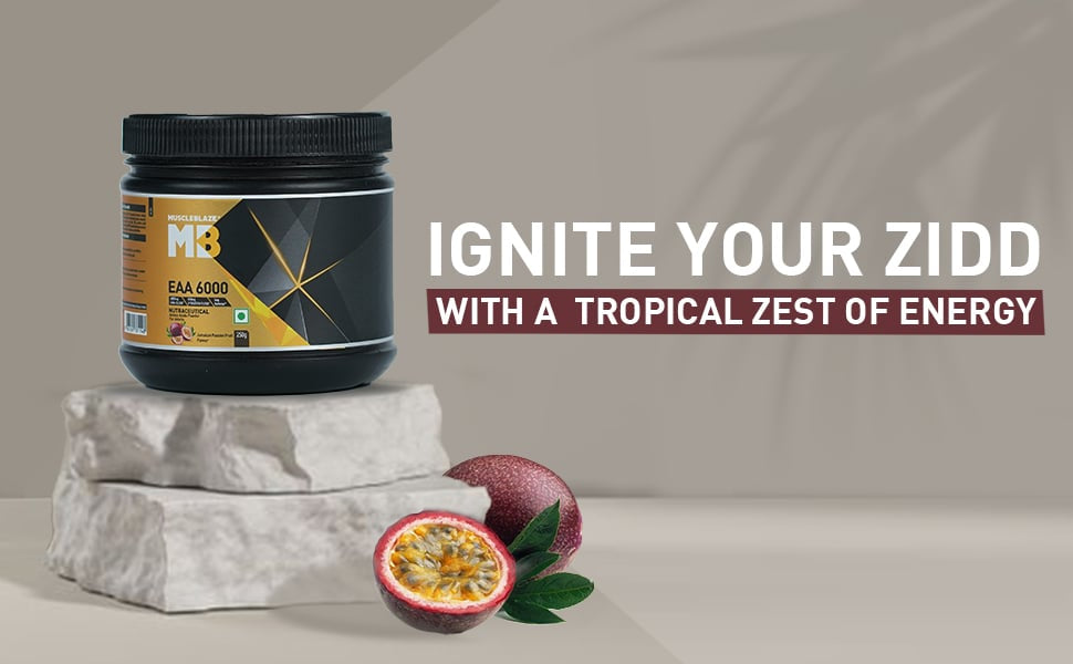Accelerate Muscle Recovery with 9 Essential Amino Acids : MuscleBlaze EAA 6000 is your ultimate intra-workout companion, engineered to speed up muscle recovery, reduce fatigue, and enhance performance during intense training.