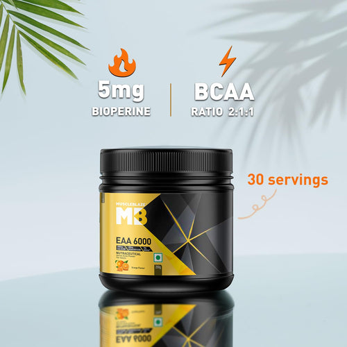 MuscleBlaze EAA 6000, 6000 mg EAAs Blend, 800 mg Hydration Blend - 25 Servings - Orange is backordered and will ship as soon as it is back in stock.