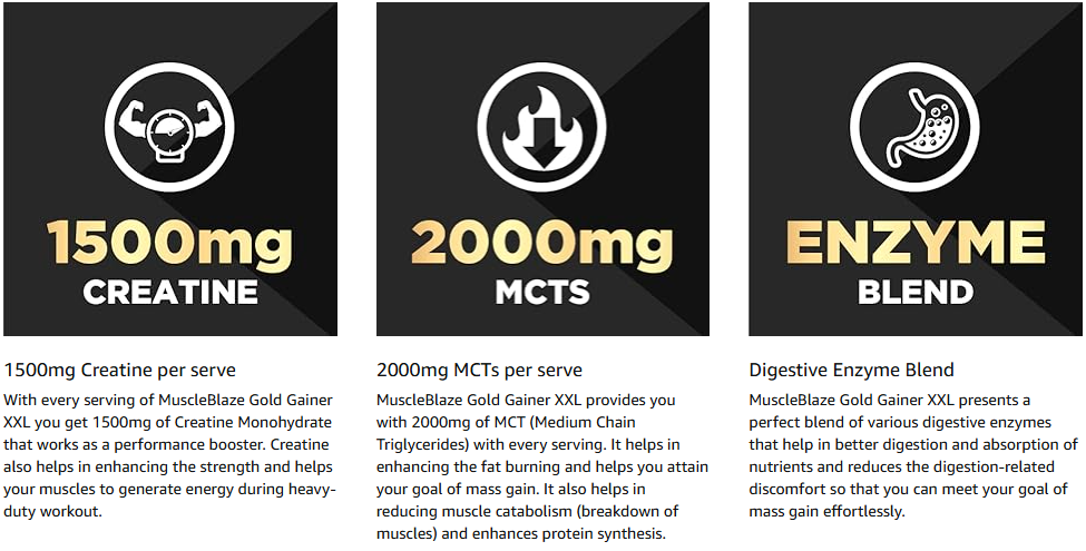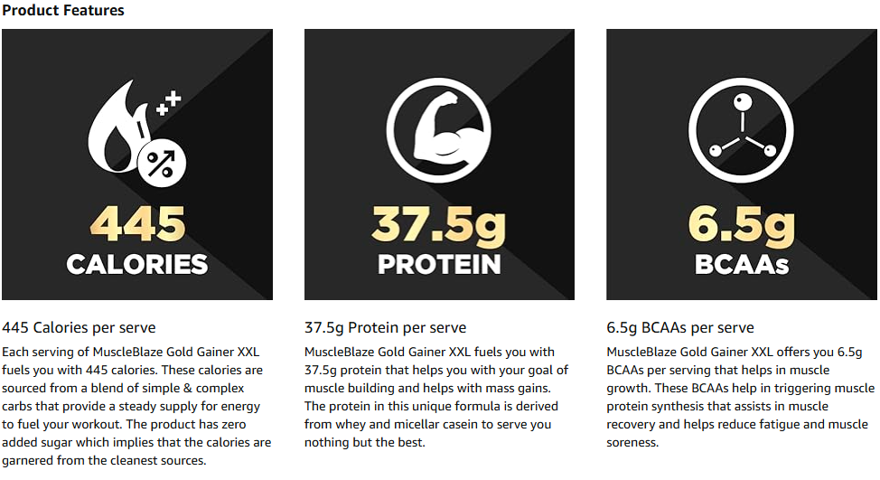 MuscleBlaze Gold Gainer XXL is expertly formulated to meet the high-calorie needs of muscle builders. It's premium nutrient profile supports optimal muscle growth and repair, turning your gains into reality. High-quality proteins, carbohydrates, and lipids provide balanced energy and nutrition essential for sustained workout performance and muscle development.