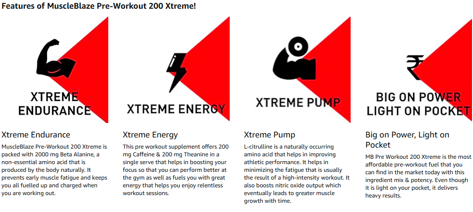 Affordable Performance : Experience premium pre-workout power without the premium price tag. MuscleBlaze Pre-Workout 200 Xtreme offers incredible value, making peak performance accessible to everyone ready to unleash their inner strength.