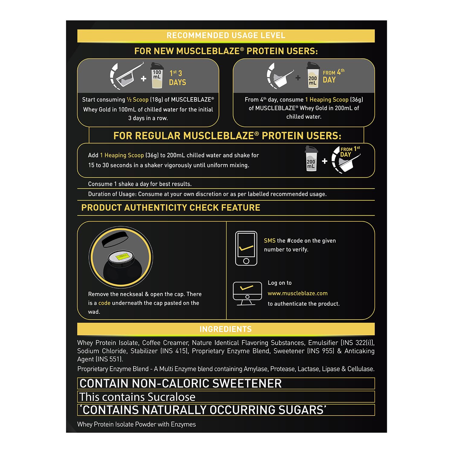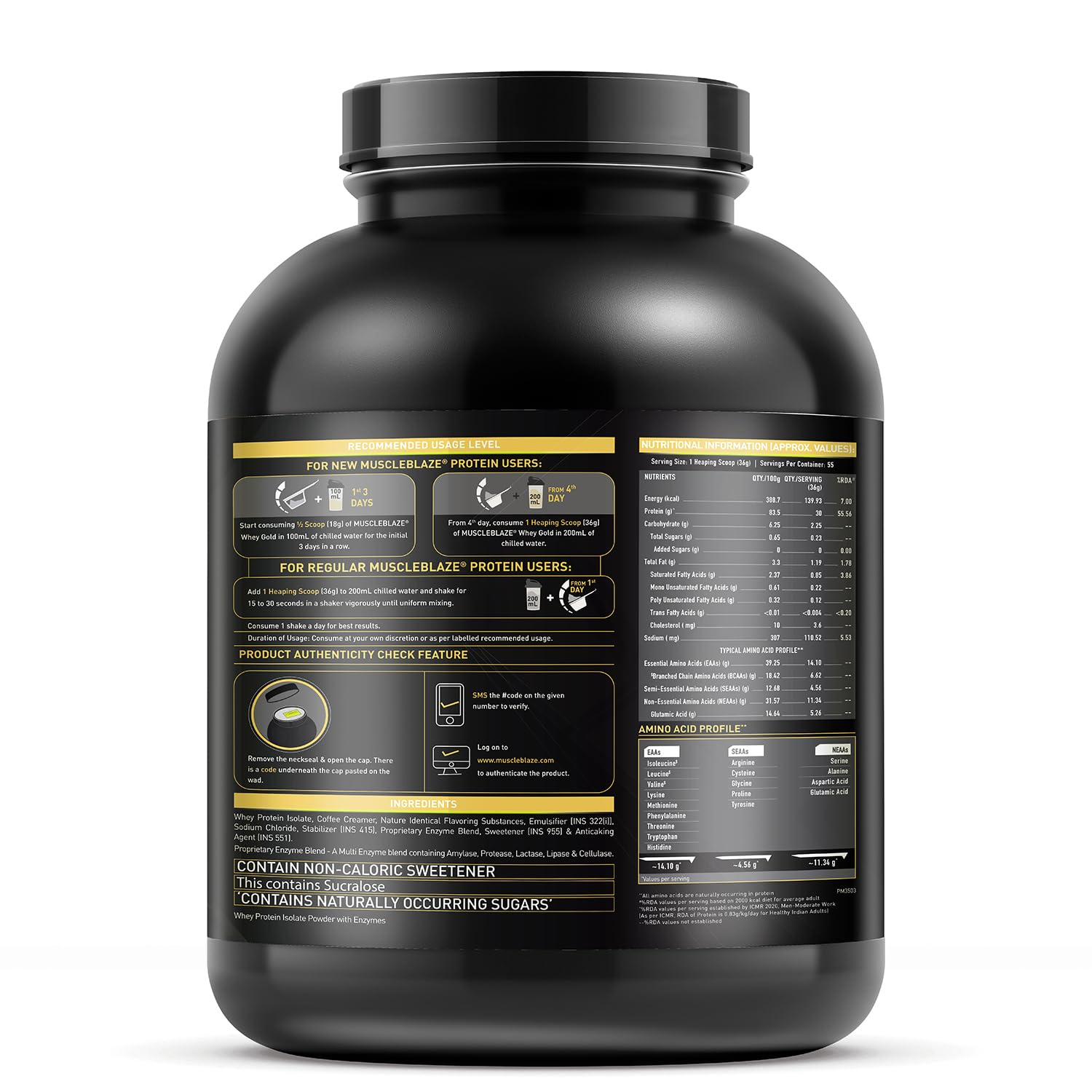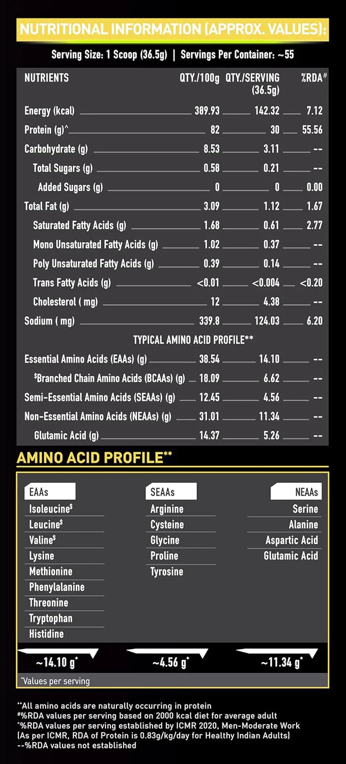 Premium Whey Protein Isolate : MuscleBlaze Whey Gold Protein delivers 25g of pure whey protein isolate per 30g serving, the ideal post-workout fuel for rapid muscle recovery and growth.